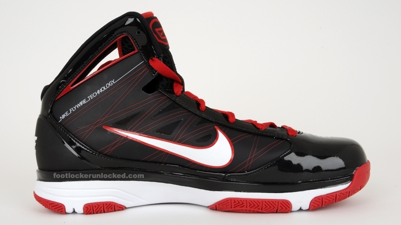Having already leaked in limited quantities, including a dope White Men Can’t Jump-inspired pair, the Nike Hyperize is building steam towards it’s full rollout for summer and fall of this year.  This pair was among the early releases and is set for a July 2009 official drop.  Given that you pretty much can’t go wrong with the Chicago Bulls palette, this serves as a safe showcase for the new streamlined Flywire pattern that sets this new model apart from its older brothers.  Take a look at all the pictures after the jump and get ready to cop these from Nike Basketball retailers like Foot Locker this summer.