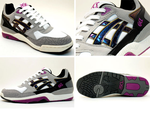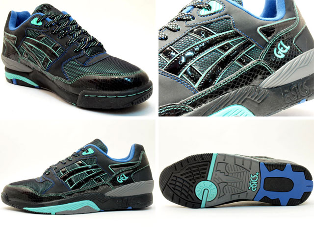 The Asics GT-Quick is often overlooked, given the emphasis on the Gel Lyte III and more recently, the Gel Lyte Speed.  With efforts like the one pictured above, though, that could soon change.  The Asics GT-Quick Season Spot Edition features three pairs, each with their own unique texture.  The black pair has snakeskin on the toe and rear quarter/heel area, the brown pair features pebbled leather similar to a basketball and the grey pair with Laker-coloured accents presents Asics’ own verson of an Elephant print-like offering.  All three of these flat-soled retro runners are available now from mita sneakers.
