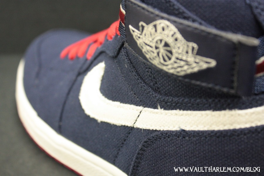 While the Air Jordan Fusion (AJF) line has divided the sneakerhead community, most agree that the ‘Wings’ logo-emblazoned strap on the original Js are welcome. The Air Jordan 1 High Strap appears above in a patriotic mix of navy blue, re dand white. The navy upper and white Swooshes are both canvas, with the Swooshes’ frayed edges adding depth. Red on the laces, strap-stripe and the ‘Wings’ logo that’s revealed by removing the strap completes the All-American look. Celebrate your freedom and cop a pair of these today from Vault.