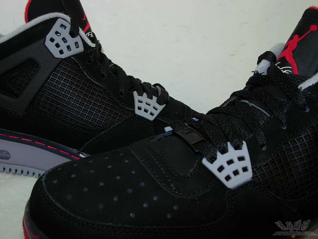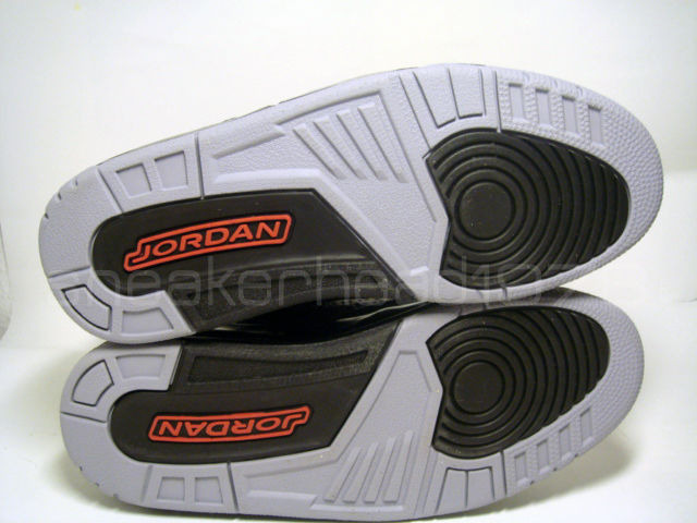Fresh off two new colourways, one on each of the last two days, here’s another Air Jordan Flight 45. This pair was revealed early this month and we saw two sets of pictures during the first week. With a black design featuring red and cement grey accents, including the iconic elephant print, this pair is a perfect fit for the classic Chicago palette. Each of the other pairs we’ve seen had irregular perforations, and though the heel tab’s braille was clear on the red and white pair, we hadn’t put the two together until seeing this sample pair with deeper perfs. Anyone who knows American Sign Language should let us know what the side panels and toe say, and if the message is clear, you can cop a pair of these now on eBay. Pics via Sneakerhead1978