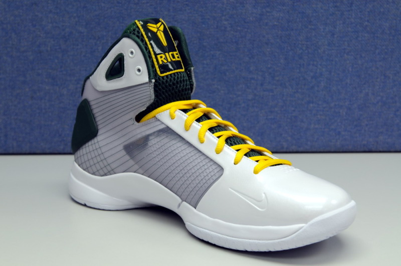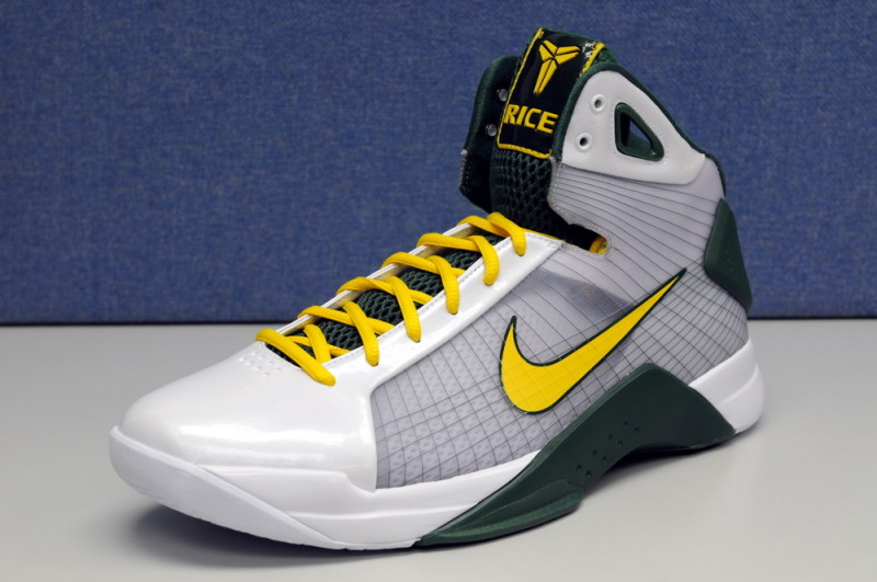 Last September, Nike released a House of Hoops-exclusive pair of Hyperdunks in honour of one of their flagship high schools. The Kobe Bryant-sponsored Rice High School in Harlem, New York has seen their fair share of dope Player Exclusives and this Hyperdunk in home white is another nice addition. With a translucent Flywire side panel, these find accents in the yellow and green team colours. ‘RICE’ is printed on the tongue below Kobe’s triad logo, just so you don’t forget. These might end up as another HoH drop, but for now, they’re just for you to gaze upon and enjoy. via Kenlu