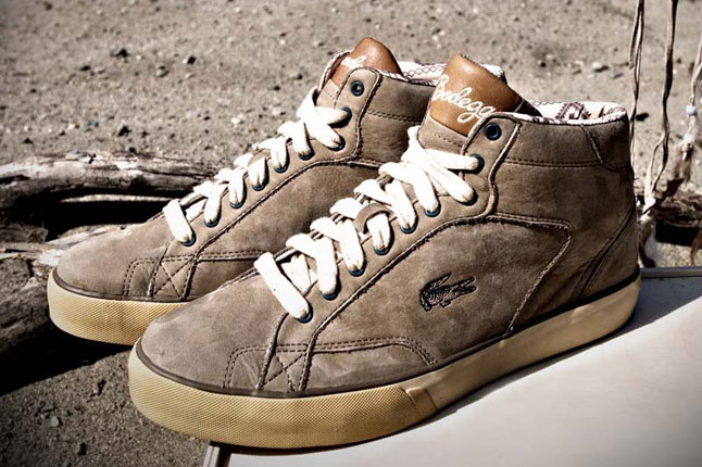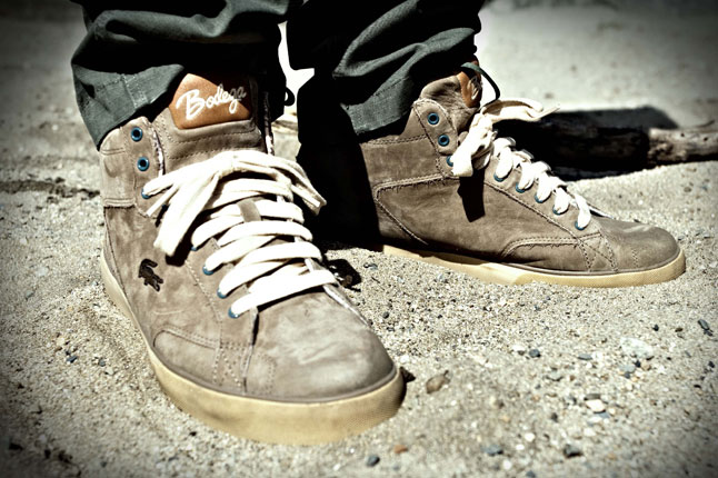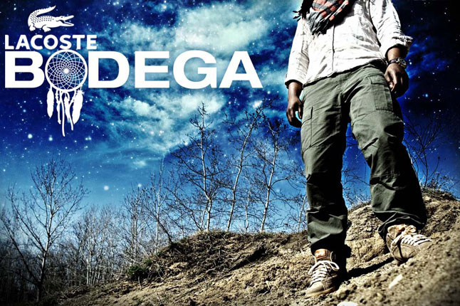 Bodega has been on a roll with their collaborative footwear. Following up on buzz they created with their installment of the Converse Poorman Weapon, the Boston crew has now teamed up with Lacoste for the shoe company’s first ever collab for the Esteban model. A simple colorway going on distressed leather for a traditional dessert boot look; but not much else can be said other than we assume there is a Native American influence by the pattern for the inner lining, and the twist of the Bodega branding including a dreamcatcher. Confirmed that only 250 pairs available worldwide, the shoes will be releasing this Saturday, April 3rd, at Bodega and other select global locations. via SF