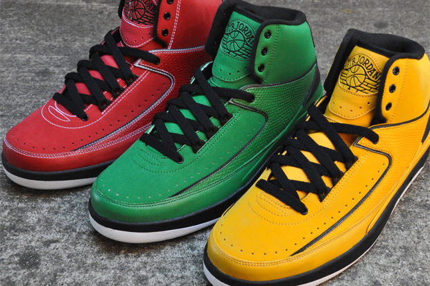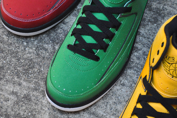 Earlier this month Sneaker News reported the upcoming release of the trio of Air Jordan II (2) Retros dubbed the ‘Candy Pack’ for its vibrant gumdrop tonal colorways. Here’s an updated look at this scheduled October 30th release; each pair of the Candy Pack features a tonal upper – red, yellow, or green – with a black midsole and a white bottom sole. The red pair? Bulls. The yellow? Lightning, as in the Air Jordan IV (4) Lightning. The green? Ray Allen PE? The reasoning behind each colorway can be discussed to tedium but what we do know is that this release definitely caught everyone by surprise and should be a sure-fire hit once these drop. Take a look at these new images of the Air Jordan II Candy Pack (or maybe the ‘Streetlight Pack’ or ‘Rasta Pack’) and let us know which colorway gets you in a sugar-rush-like Air Jordan frenzy. via HB.