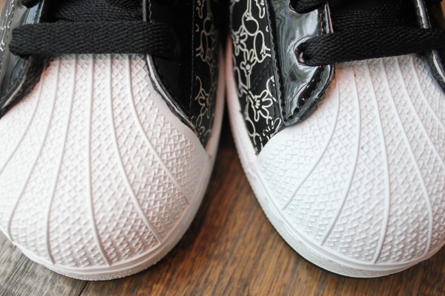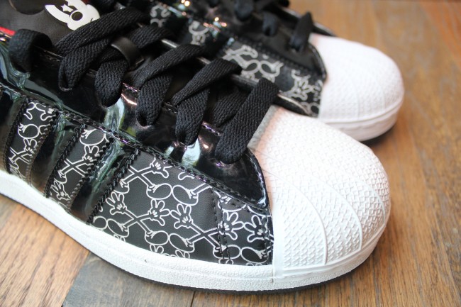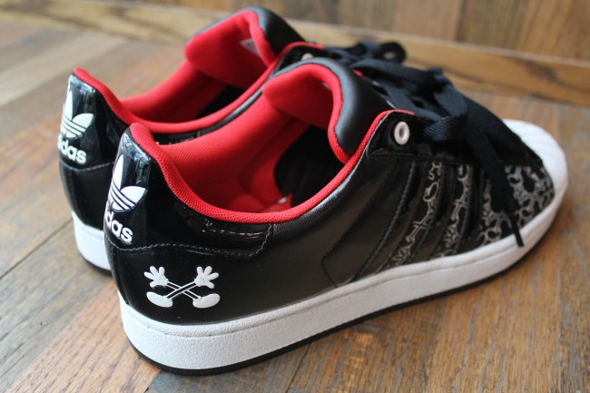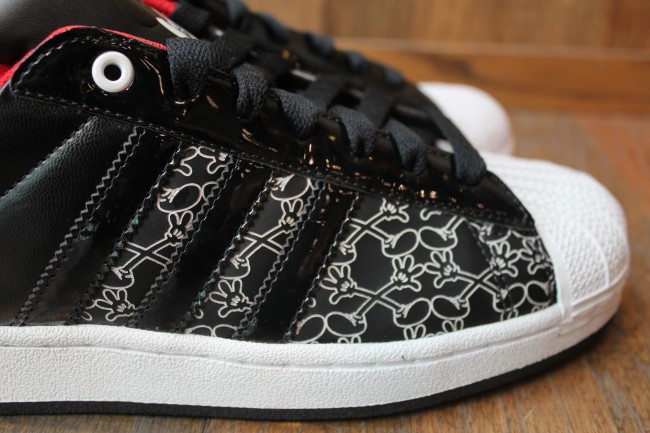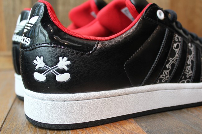 Has any other brand collaborated with more sneaker companies than Disney? With tag-team efforts ranging from Etnies to Reebok, the world’s family media leader has covered all their bases (except for Nike), and here’s a new Mickey Mouse x Three Stripes collabo. The Disney x adidas Originals Superstar II Mickey X goes with the immortal Chicago-style palette and ends up looking like Kaws might have been involved thanks to the unique glove-shoe ‘X’ pattern on the forefoot. Mickey appears none too happy to have been de-torso’d, but the face he’s making on the tongue does indeed impart a bit of extra attitude to this design. Click through to see more images and if you want to grab a pair, make haste to select adidas Originals accounts like Mr. R Sports.