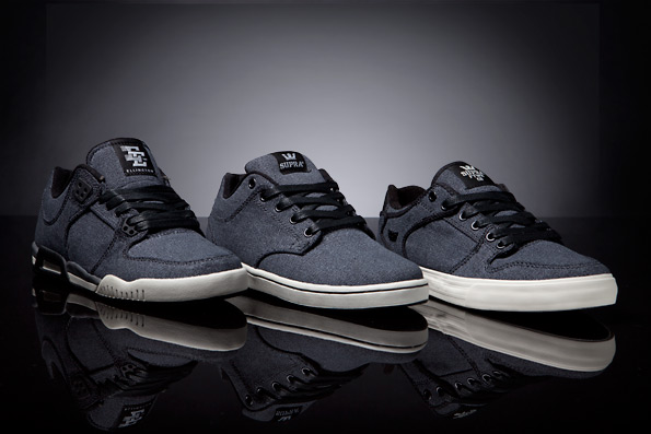 Supra’s latest pack comes in dark grey tones like the one we most recently showed you here on Sneaker News, and even if it doesn’t have the same significance, this new trio is equally visually impressive in its own right. The Supra Denim Pack brings together the Supra Avenger, Vaider Low and Antwuan Dixon with the unified theme of denim uppers and white soles. Tonal laces, lining and piping (on the Vaider) complete the dark look, which is the kind of thing sneakerheads over which would have gone absolutely ape a few years ago; has the increased availability of denim sneakers diminished this pack’s punch? Click through to see more, let us know what you think and look for these at select Supraretailers including their own e-store.