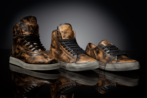 The way Supra’s been packing things up in over the past few months, a luggage-inspired trio seems only right. The Supra Luggage Pack takes on the look of well-worn fine baggage thanks to a process whereby golden leather is randomly treated to scuffing from a buffing wheel. These Supra Henry boots and Thunder highs and lows are still soft and supple, but have the appearance of being quite beaten up and would likely be best worn with a pair of pristine jeans so as to maximize the effect. Another solid set or should the crown brand pack it in with their new release strategy? Have a look for yourself after the jump, let us know what you think and check these out at your local Supra retailer.