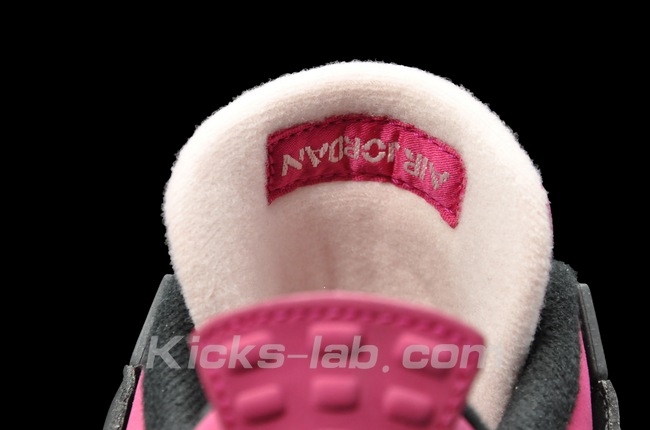Is an Air Jordan IV for girls worth a thousand dollars if you can get a pair ninety days before everyone else? That’s the latest question in the early availability scene, as the ‘Voltage Cherry’ Air Jordan 4s have managed to make their way to specialty retailers just as many of the other Retros and new colorways are apt to do these days. This pair’s pink nubuck design is eyecatching to be certain, but with a fireplace’s worth of heat on tap for the holidays season, Jordan Brand got the February release date right, especially with this pair’s ‘FTLOTG’-style heart/basketabll embroidery details. Check them out in the images awaiting your click on the jump below and if you’ve got the nine-ninety-nine-ninety-nine to pony up for the Voltage Cherry AJ4, grab one of the super limited supply from Kicks-lab.