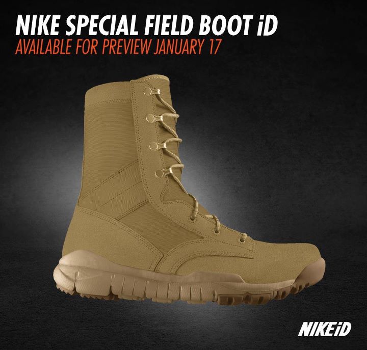 It’s changed the meaning of its acronym and offered three different variations on the base design, and now you can customize your very own SFBs on NIKEiD. The Nike Special Forces Field Boot is coming up with a special preview engagement on the Swoosh’s online customization service, which means that starting next Tuesday, January 17th, you’ll be able to play around with combinations of colors, patterns and materials on the Free-soled tough-as-nails super-hightop. Choose from a variety of earthy suedes as your base and either go tonal, high contrast or add a camouflage pattern on the quarter panel and tongue, and vivid laces add an extra degree of custom swag that’s been unprecedented to this point. We’re excited by the potential of seeind other Nike boots available for iDing, and you can get your first taste of the SFB iD in advance of Tuesday’s preview, by clicking on the jump below.