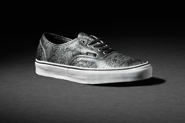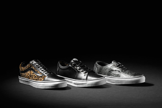 Animal prints are among the most widespread trends for early 2012, and we can trace this recent surge to roots laid in Japan over the past coupld years. Among the earliest adopters were Vans Japan, who brought us in-house designs and WTAPS collabo drops with the safari look, and even a cheeky fly print from Supreme as all the other brands were just catching up. Off the Wall continues this push by bringing to market three new lowtops as crafted by two of the riders they share with Alien Workshop. Anthony Van Engelen and Jason Dill teamed up on the Vans Old Skool ’92 Pro, Authentic Pro and Sk8-Lo and they run the range from black leather-accented cheetah fur to hidden cheetah spots inside a plain black exterior, and all the way back to a silvery snakeskin (respectively). Vans Syndicate releases are among the brand’s most limited, and you’ll find them on March 1st where available. via TDS