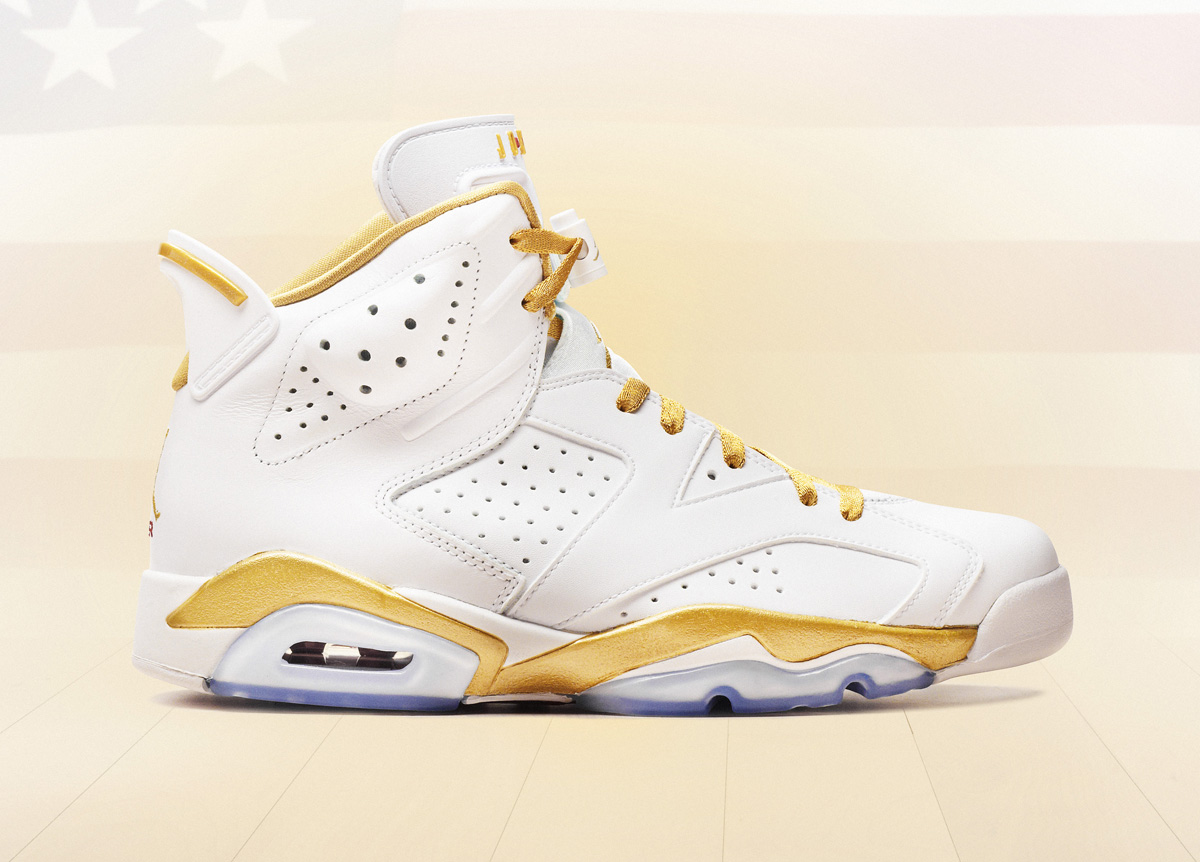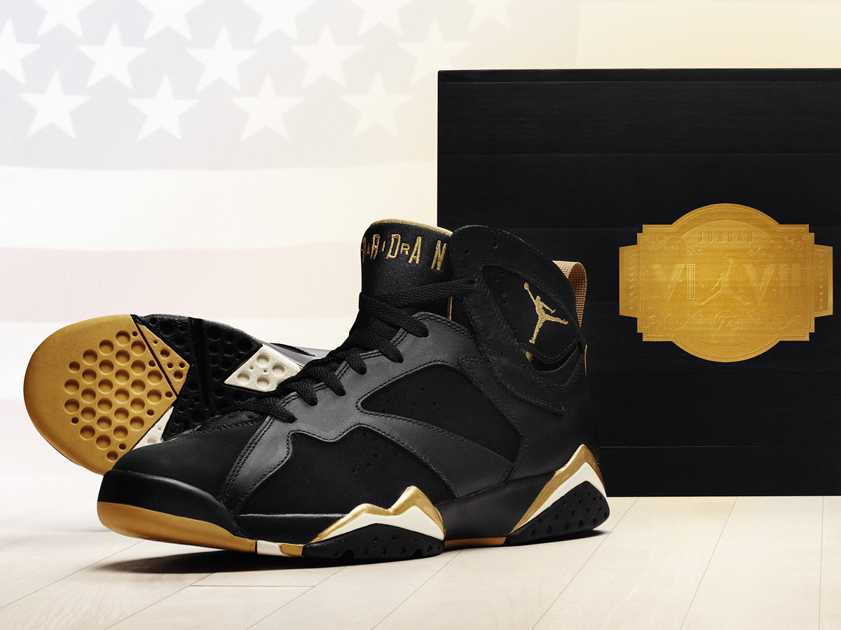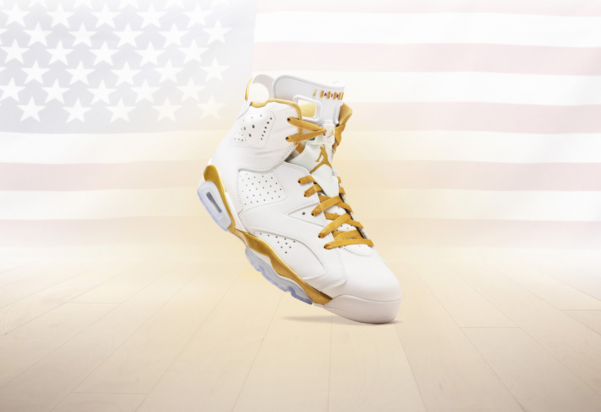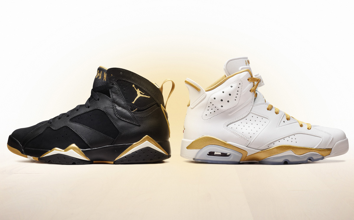 When viewed from a certain perspective, there’s not a single player on the current Team USA roster more instrumental to that roster’s collective successes than Michael Jordan. MJ’s accomplishments still drive Kobe Bryant to chase that elusive sixth ring, inspire LeBron James to change his number in deference to that fistful of Chips, has Kevin Durant and Carmelo Anthony wanting to score like it’s 1988, and all of those guys want their second Gold Medal just like His Airness. The Air Jordan ‘Golden Moments’ Package brings together Air Jordans VI and VII with golden trim and American flag footbeds into one special two-pack that hits retailers in just under two weeks on Saturday, August 18th. These figure to be one of the most desired items of the back to school season, so click through to see the official Jordan Golden Moments Pack images and let us know which of these DMP-style releases you’re most excited to own.