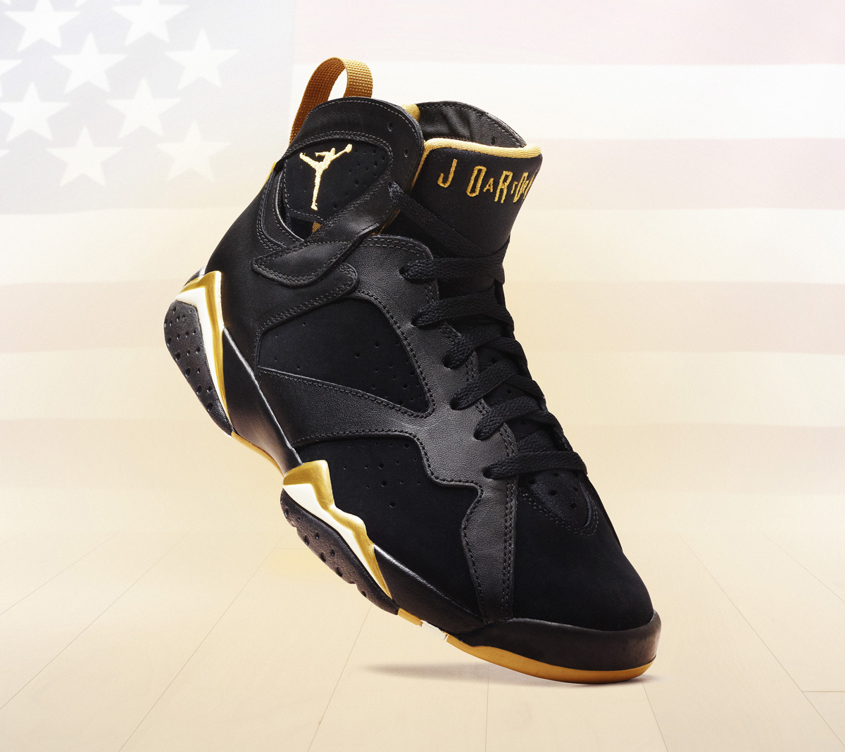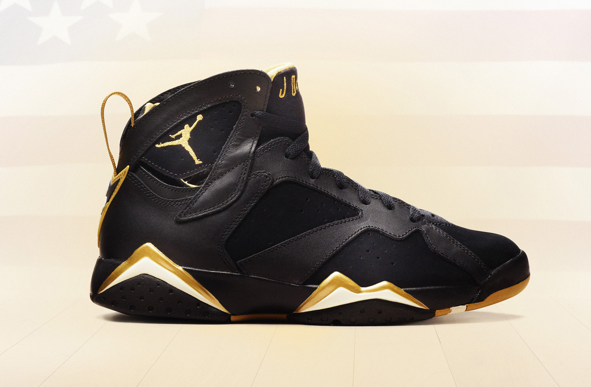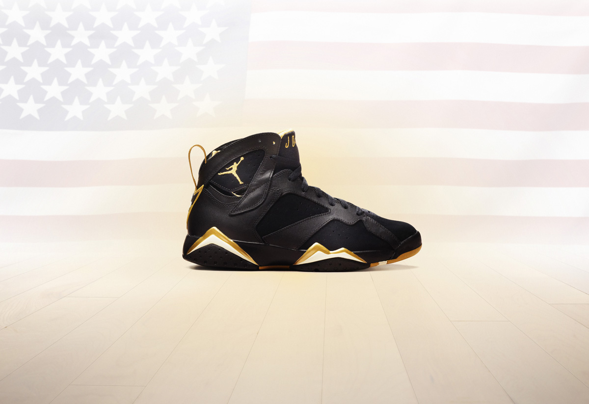 When viewed from a certain perspective, there’s not a single player on the current Team USA roster more instrumental to that roster’s collective successes than Michael Jordan. MJ’s accomplishments still drive Kobe Bryant to chase that elusive sixth ring, inspire LeBron James to change his number in deference to that fistful of Chips, has Kevin Durant and Carmelo Anthony wanting to score like it’s 1988, and all of those guys want their second Gold Medal just like His Airness. The Air Jordan ‘Golden Moments’ Package brings together Air Jordans VI and VII with golden trim and American flag footbeds into one special two-pack that hits retailers in just under two weeks on Saturday, August 18th. These figure to be one of the most desired items of the back to school season, so click through to see the official Jordan Golden Moments Pack images and let us know which of these DMP-style releases you’re most excited to own.