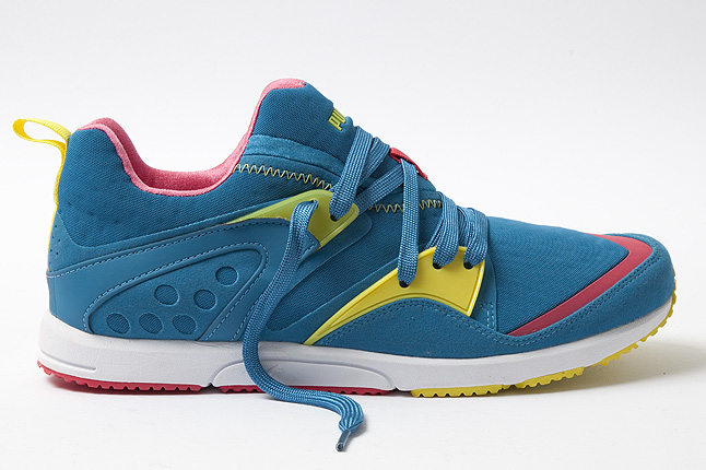 Puma’s LTWT revision has breathed new life into its inimitable Disc Blaze runner, and now the German Cat turns its attention to renovating that unique laceless style’s predecessor. The Puma Blaze LTWT is a lightweight update to the 1991 Blaze of Glory, a heavily ventilated low profile silhouette whose neoprene bootie construction calls out to those who prefer the sockless look. There’s one CMY-ish colorup and another that strips out the blue (leaving grey) and adds it to red elements for a purple lean. Both can be seen in greater detail below, and be sure to stick with Sneaker News for word on a US release.