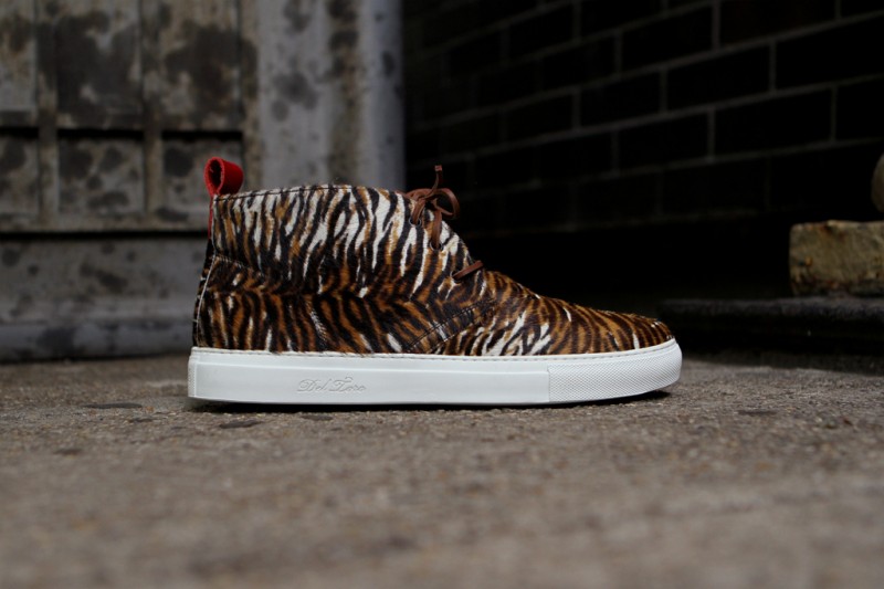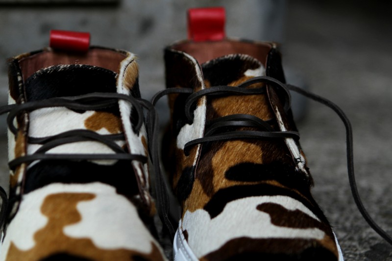 It’s an easier observation to note that Ronnie Fieg loves him some old school suede runners, but when you look closer, you realize his most significant contribution is adding extra attention to relatively obscure masterpieces. And the quality has arguably never been higher than on his latest tag team effort, this one reaching far outside the sneakerhead mainstream to pull in Italian shoemakers Del Toro for two each of their timeless Alto Chukka midtops and Basso Wingtop lows. An interesting mix of suede and pony hair along with animal prints ranging from tiger to leopard and a little ‘Cow Camo’ for good measure. Each pair retails for a fairly steep $340, so if more images below suggest the luxurious quality and exclusivity is worth the price, be ready when they go on sale at Kith in Manhattan and online tomorrow at 11am EST.