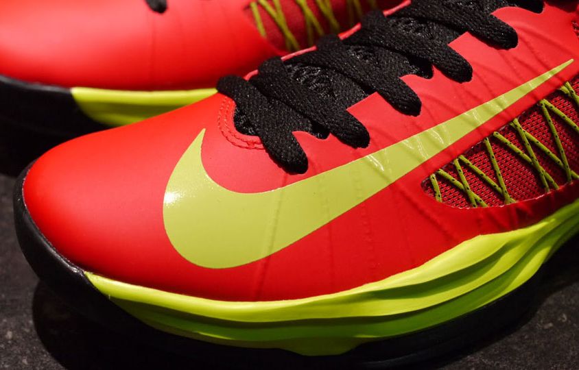 Usually when a red and green sneaker drops this close to the holiday season we’d be quick to peg it as a Christmas pair, but that just doesn’t seem right when looking at this new Nike Lunar Hyperunk+ colorway. The green included isn’t your typical deck-the-halls tone, instead coming in an eye popping atomic look-plus there’s the heavy bits of black ruling out any sort of Santa Clause colorway. Click through with us to check out this Nike Lunar Hyperdunk and it you like what you see then be advised that mita out in Japan already has there’s in stock.