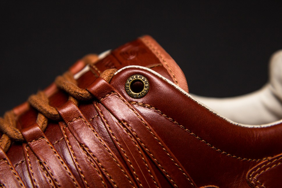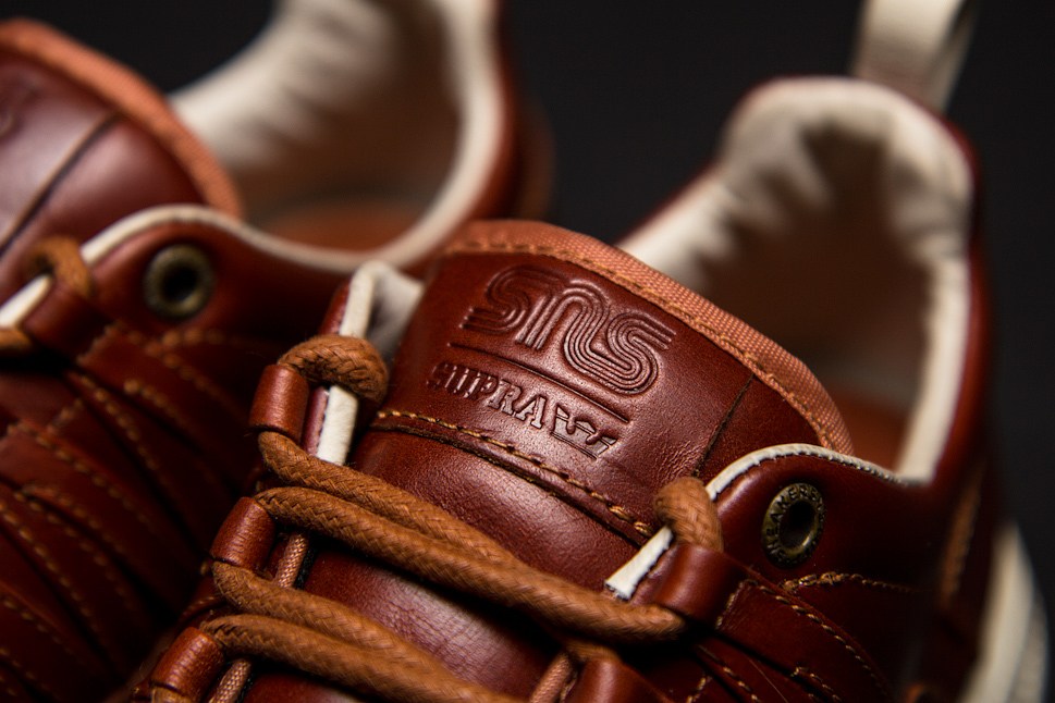 Supra’s ever-growing catalog features a variety of tongue branding and not all that many traditional tongue tags. Erik Ellington’s Diablo is one of the more notable exceptions, featuring a mysterious script on the inner portion whose meaning is less clear than what we saw Friday when Stockholm, Sweeden’s SneakersNStuff teased a new collaboration with Supra collabo. It’s a quick turnaround today, as SNS comes through with a confirmation that their brown leather design for the Crown brand is directly in line with their previous tag team efforts. The SNS x Supra Owen keeps one of Europe’s best boutiques in step with their many classic running collabos, meanwhile bringing Supra some added attention for their first ever casual runner. This luxurious ‘Curry’ leather design features a Tre Kronor debossing on the inner tongue in honor of the Swedish coat of arms and will release in just 365 pairs along with matching leather phone cases, starting in-store next Saturday, November 17th with an online drop to follow on Monday the 19th.