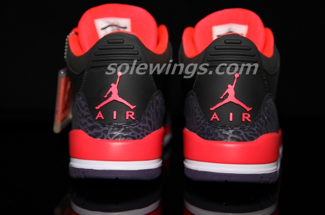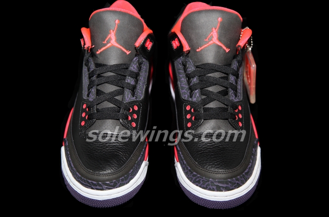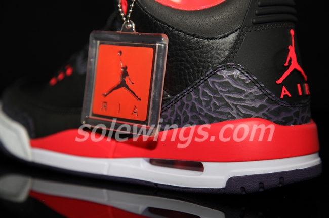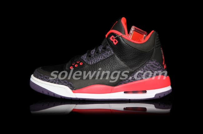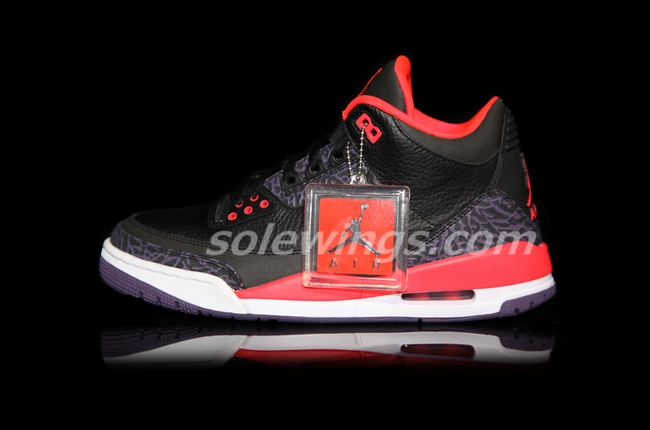 After a 23rd anniversary year in 2011 that saw the return of three of four original colorways, the Air Jordan III conceded ’12 to its immediate successor. The Three returns next year with at least two new styles, one of which happens to look a little like an OG Air Jordan VII that released earlier this year. And if it hadn’t been for the ‘Raptors’ Sevens, this purple-accented ‘Bright Crimson’ Air Jordan 3 might have earned a Canadian nickname itself for the connection to Toronto’s NBA colors. This bold new style is slated for a late February release, so stick with Sneaker News for updates and check out a new round of photos below in the meantime.