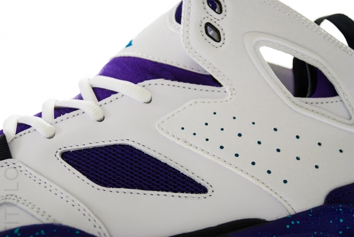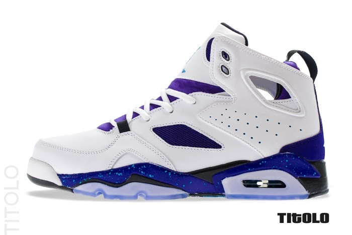 The Air Jordan Flight Club is an official fanclub that traces its roots back to 1990. Flight Club membership evolved to the point where it entitled holders to cop limited edition Jays online, but that has cooled off in recent years. Now we see Jordan Brand revisit that early ’90s look with a familiar name as the Jordan Flight Club ’91 fast-forwards bit from the initial mailings, this pair combining aesthetics from Air Jordans VI and VII along with the original Jordan 5 ‘Grape’ colorway that’s about to be retroed in May. Have a closer look at the speckled midsole below and let us know how these compare to the Grape Fives, then grab yours at JB retailers like Titolo.