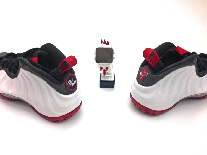 How long will it be before the Nike Air Foamposite One is upgraded by some reflective touches on the retail side of things? We would guess that it’s within the realm of possibility for the next couple of years given how liberal the Nike Sportswear squad has been with the shoe as of late. Sole Swap has long leap-frogged any such arrival though with his custom creations. The latest of which is this, a white based 3M laden look that’s souped up by a Chicago combo. Continue reading to see the shoes, along with the matching Dopell watch and get in touch with Sole Swap for inquiries.