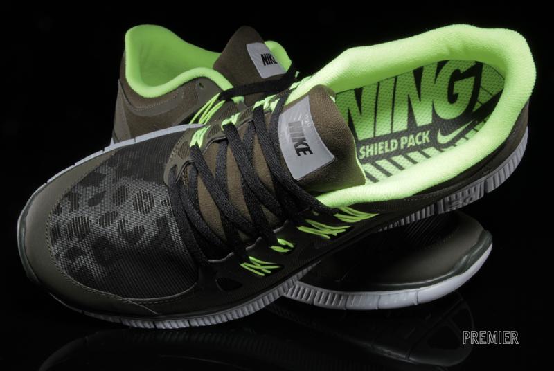 Nike is dropping another series of “Shield” runners for 2013. If you’re unfamiliar, that designation points to a weather-proof sneaker that usually has its fair share of reflective silver, scotchbrite materials. The Nike Free 5.0 shown definitely delivers on that end. Like a couple of the other runners of that sort we’ve seen in the past couple months, the shoes have a covert animal print that lights up when the light and angle is just right. Flip through a full set of angles for these sneakers after the click and then purchase yours from the team at Premier.