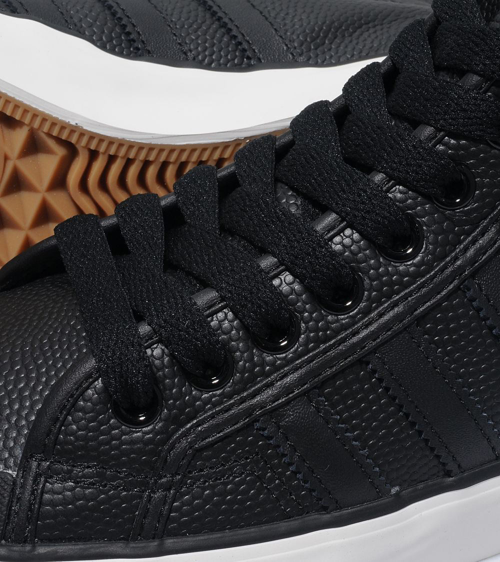 The adidas Originals Nizza Hi hadn’t been too prominent across the summer months, but here’s another pair that keeps this classic basketball hightop in the conversation for fall. They’re done up as the black counterpart to a brown edition we showed you a short while ago, but whereas that pair’s pebbled leather fit both football and basketball textures, this black makeup isn’t a direct connect with the sport for which this shoe was created. This degree of separation from the obvious makes this pair all the more interesting, and you can find them in stock now at Originals retailers like Size?