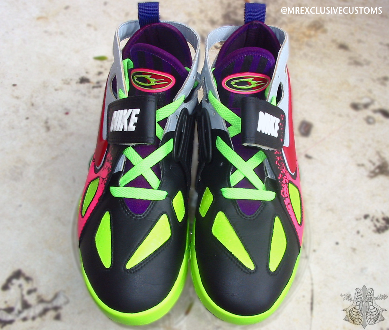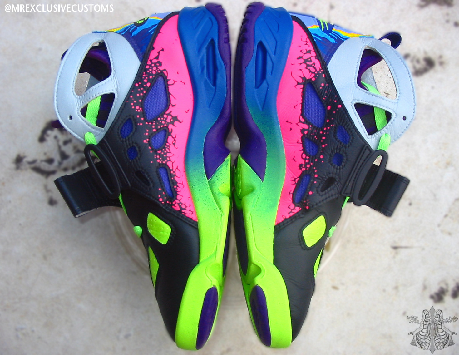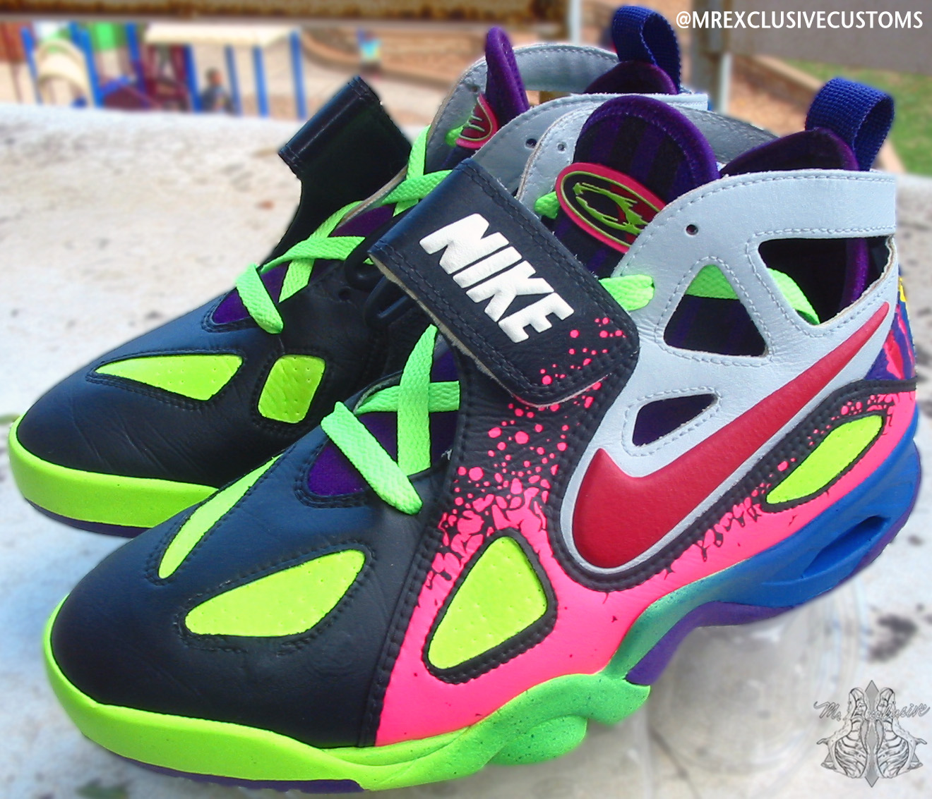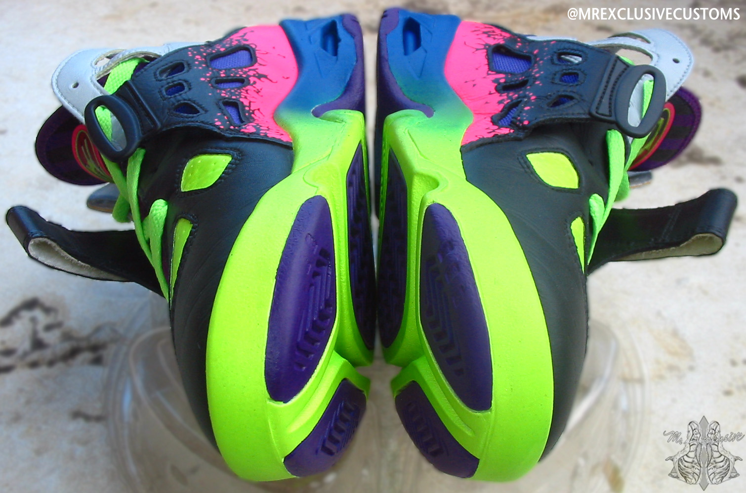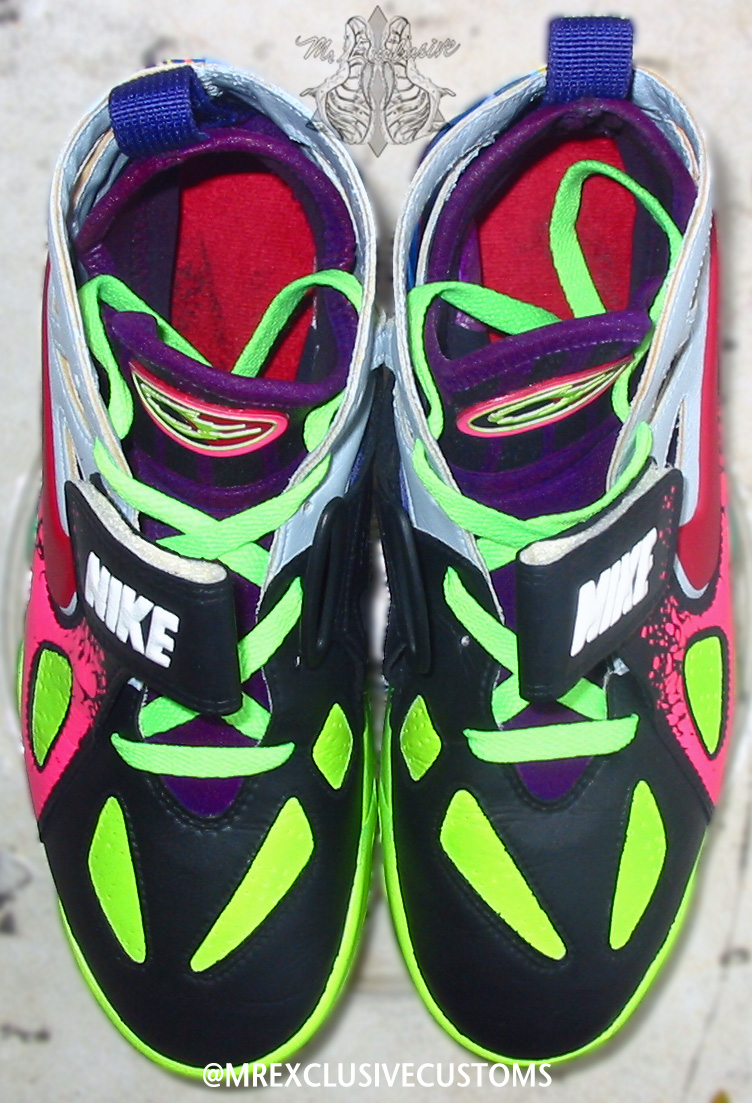 2014 is shaping up to be a big year for fans of the classic Andre Agassi Nike Tennis models. Agassi’s Air Tech Challenge II is returning with new colorways and the previously unretroed ATC Huarache will also be releasing next year. The second one’s sequel has also not been retroed in 20 years since its debut, which makes this Nike Air Challenge Future ‘What the Agassi’ custom by Mr. Exclusive even more intriguing. He blends familiar elements like the ATC 2’s Lava print and the 4’s wavy multicolor heel pattern amid a variety of bright colors on a silo that’s moving its way up the ‘please retro these’ list, especially after this reintroduction. See them from several more angles below and let us know which is your favorite classic Agassi sneaker.