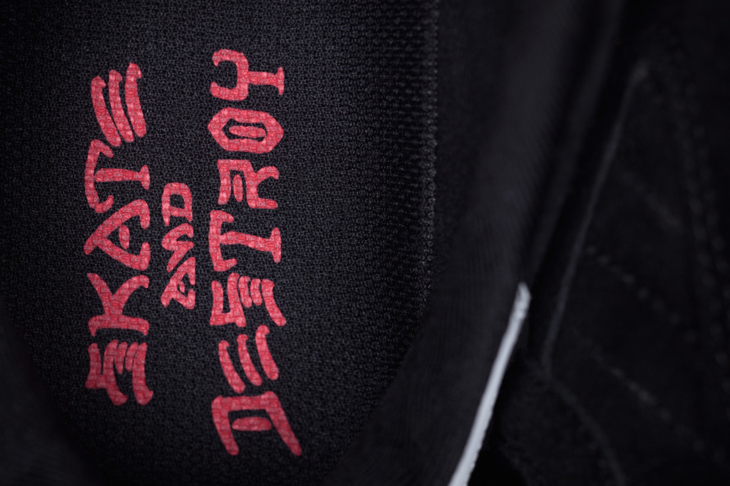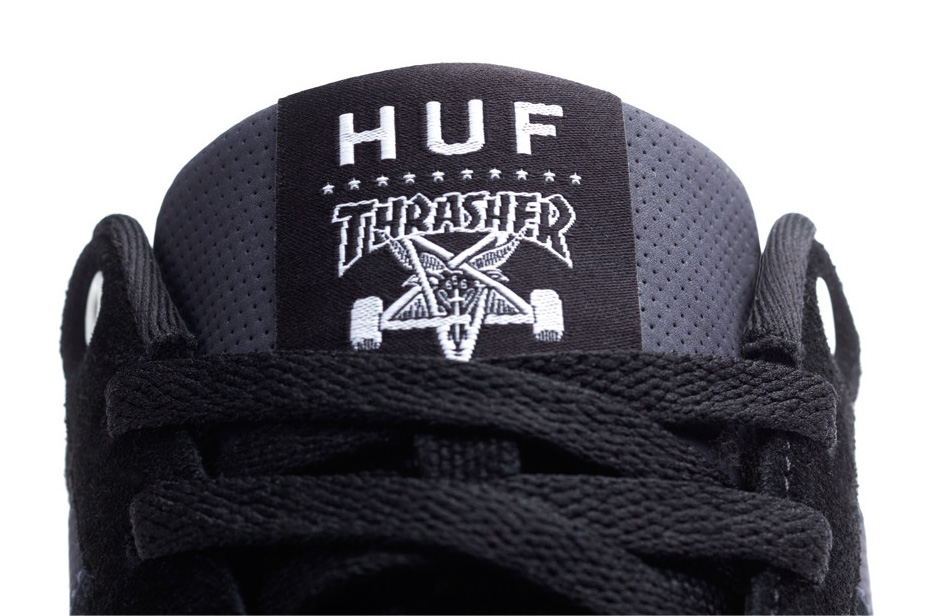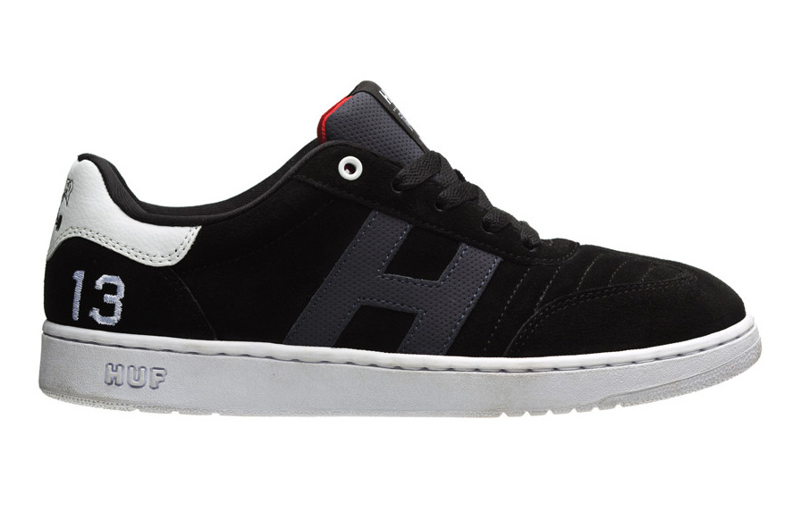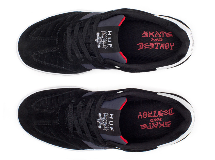 The HUF Arena debuted this July as the California-based skate brand’s first soccer inspired skateboarding shoe. The latest colorway is produced in collaboration with a magazine that has been around long enough to see just about every skate shoe trend come and go, as Thrasher teams up with HUF on this new pair. The Thrasher Arena is a simple black and white palette with a bit of red on the tongue and insoles, and features the venerable skate mag’s logos on the tongue and heel as well as ‘2013’ embroidery commemorating the date. More photos show these from additional angles below, then cop yours straight from HUF.