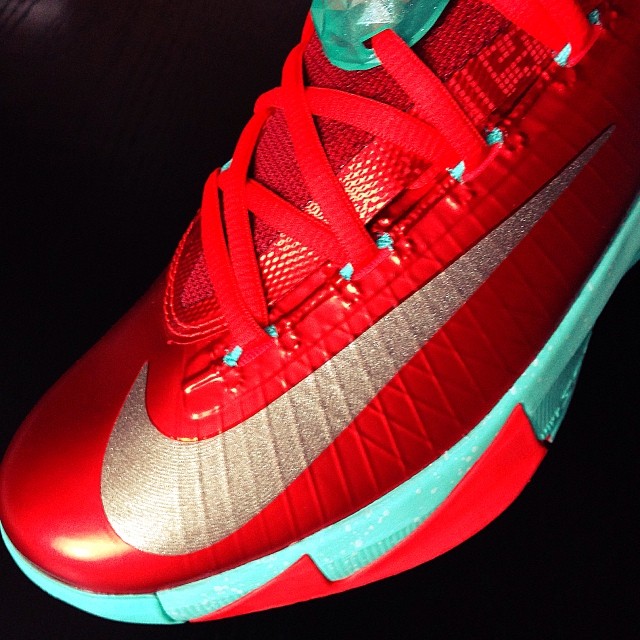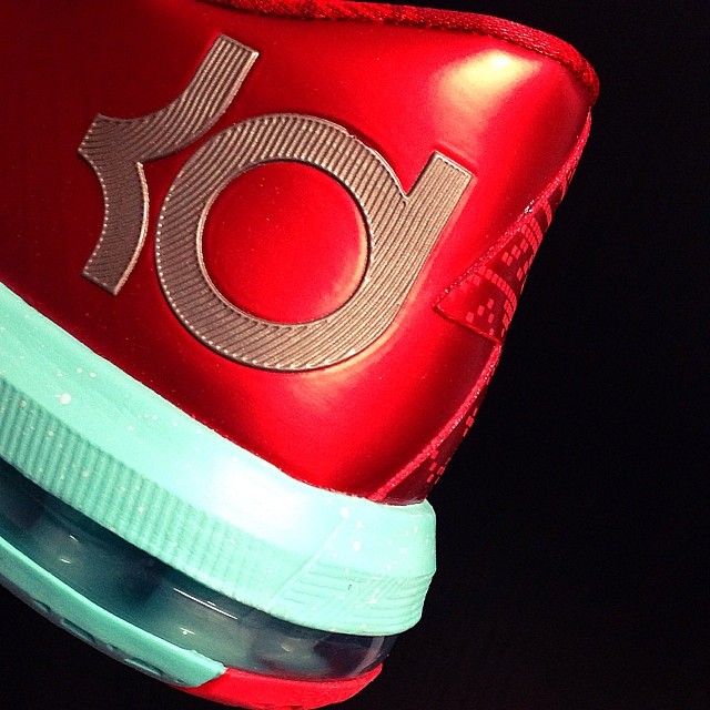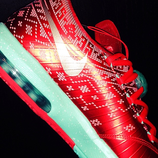 Have you noticed the little ornaments hanging off this year’s “Christmas” releases from Nike Basketball? The LeBron, KD, and Kobe offerings each come with a lacelock attached that looks not too far off from something you might see hanging off the tree this year. For what it’s worth the KD 6 “Christmas” also packs a 3M punch that reveals sort of a faux fair-isle style design across the medial side of the sneaker. Take a better look at the shoe in question after the break and check back in with Sneaker News for updates and sneaker release dates on the daily.