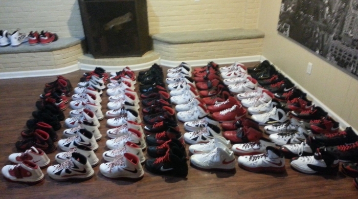 How would you like to own 47 pairs of LeBron sneakers straight from the collection of the man himself? A group like that is now up for grabs. The set, which has the Nike LeBron X as the most frequently occurring silhouette, was apparently purchased at a charity even for a local children’s hospital in LeBron’s native Akron Ohio and features shoes exclusively in his size 16. Continue reading for a glimpse at the massive horde and then give us your best guess on the worth of the whole set before you go and check the auction for them that’s happening right now from nos-jeep on eBay.
