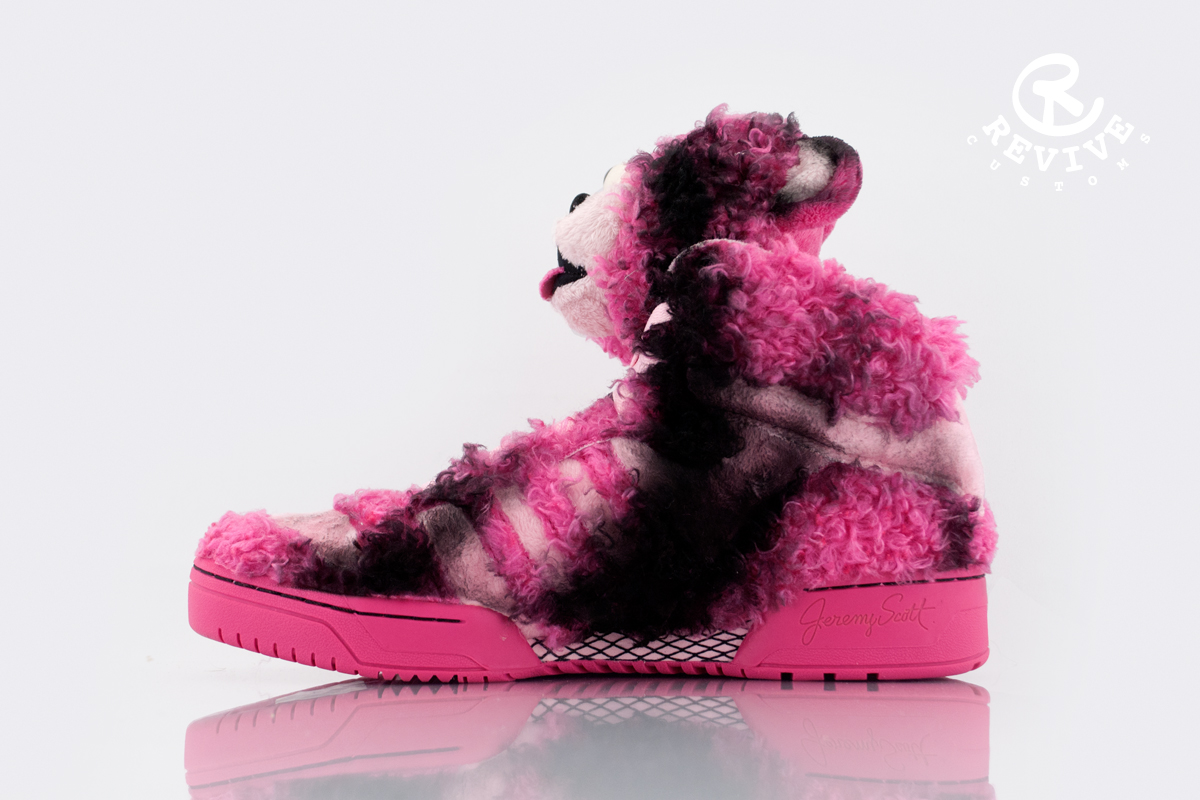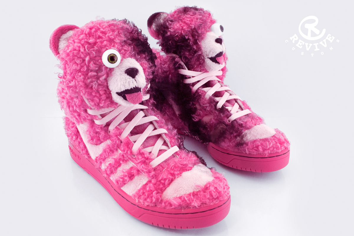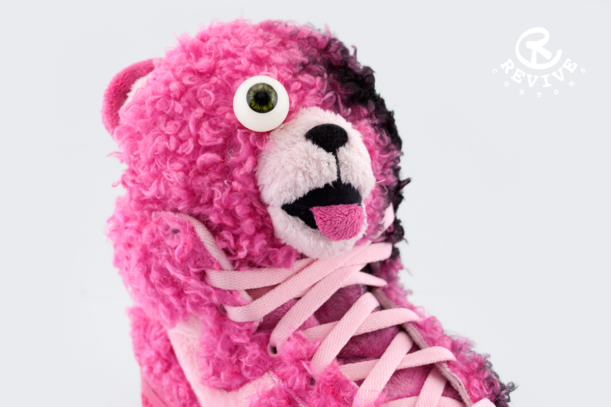 At this point we’re assuming that everyone out there has seen Breaking Bad and it’s OK to talk about spoilers and such. Which is why we’re going to show you this insane take on the Jeremy Scott x adidas Originals JS Bear from Revive Customs. The approach sees the inside of both shoes seared, with the bear’s eye removed to mimic that recurring image from the show’s second season (Which of course was a foreshadowing for the eventual demise of Gus Fring). Continue reading to see the rest of the images on this creative Breaking Bad pair of sneakers from Revive Customs and let us know in the comments if you like the work.