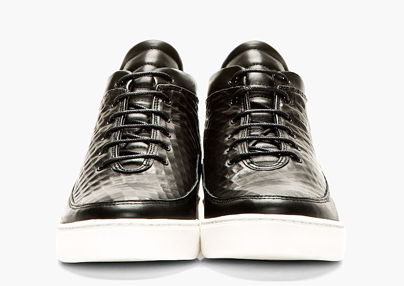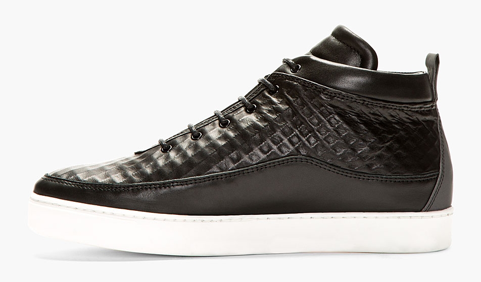 When it comes to sneakers, you get what you pay for. Sure, luxury lifestyle models like this one from Public School might have a little bit of a barrier to entry as far as the MSRP is concerned, but considering they were hand crafted in Portugal with some of the finest leather around, we’d say it’s worth it. The Public School Leather Midtop sneaker on display here features a murdered out look up top and a pristine white outsole for the bottom. Continue reading for a full set of images on the shoes and then pick up a pair for yourself now exclusively at SSENSE.