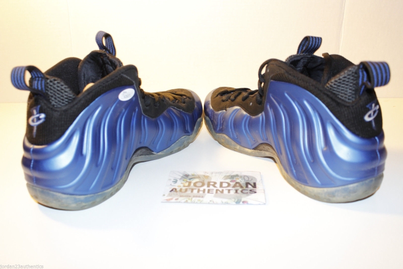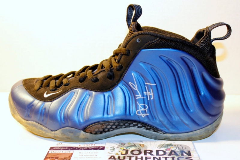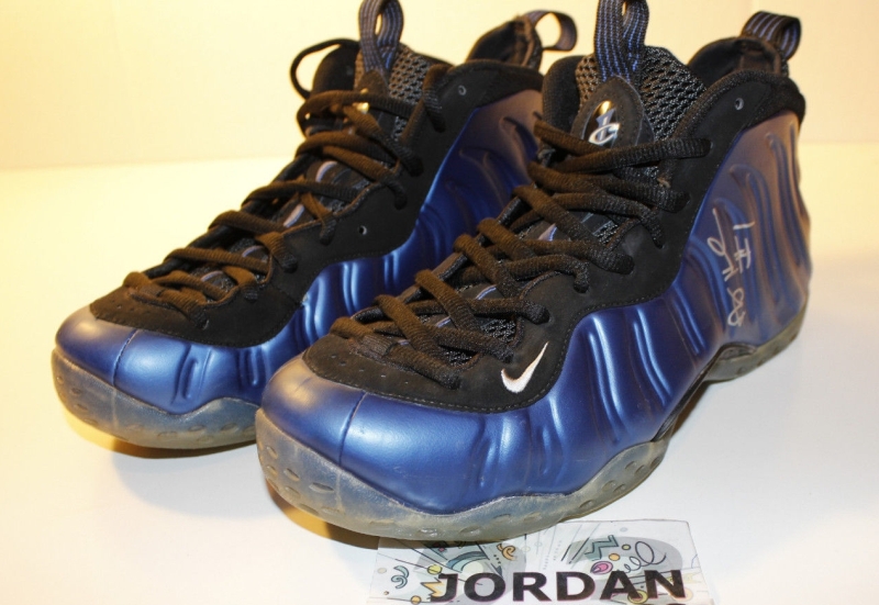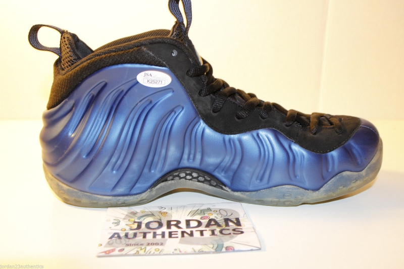 We know that you’re ready for the Nike Penny “Shooting Stars Pack”, but there’s still a little while to go before that box set of sneakers show up. In the mean time though, you can distract yourself with this pair of the Nike Air Foamposite One “Royal” that’s got a special touch to it. That scribbling you see is from Penny Hardaway himself, and definitely sends this particular pair up from standard retro release to collector’s item. Take another look after the break and then check out this asking price for these Royal Foams right now from jordan23authentics on eBay.