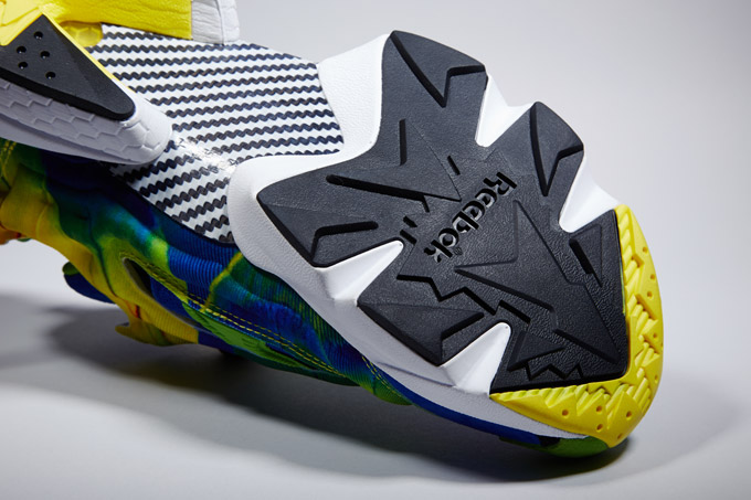 Crooked Tongues have decided that the Reebok Insta Pump Fury is a shoe that needs a lurid makeup in order to match the striking design of the shoe that still looks futuristic two decades after the fact. And so they’ve come with the Reebok Insta Pump Fury “The Angry Bird”, which ends up as sort of the antithesis to that Beams pair that made its debut on this site yesterday. The sneaker is a 2014 World Cup tie in inspired partly by the macaw’s feathers and partly by the garments of Jorge Campos. Find full images for the shoes after the break and find them online at Crooked Tongues this Saturday in limited numbers.