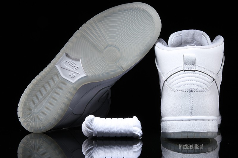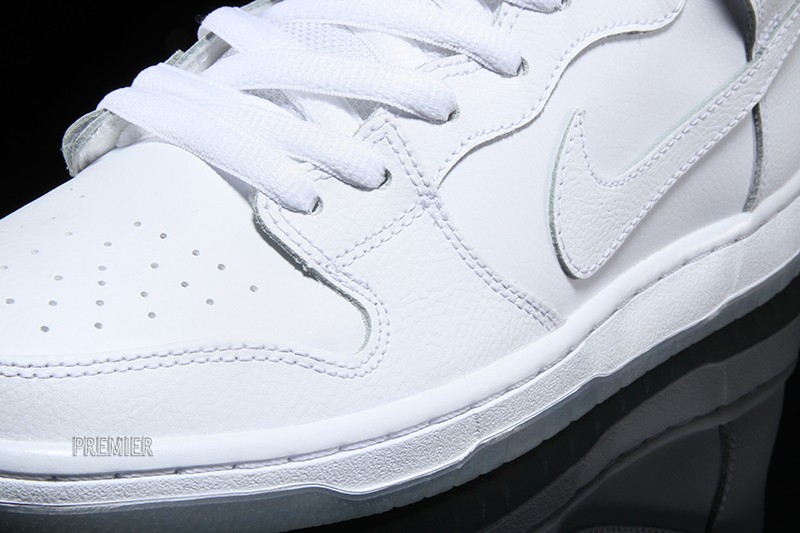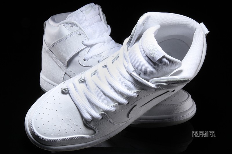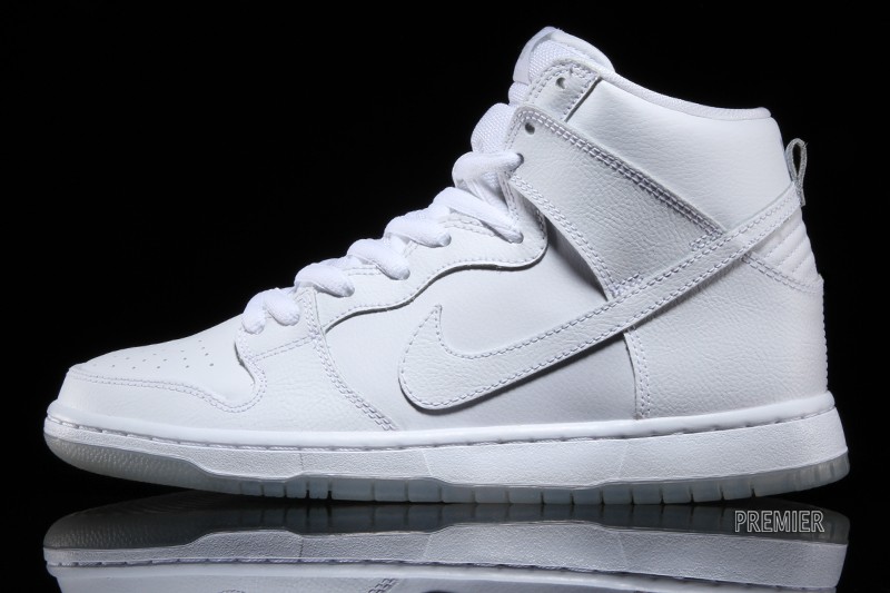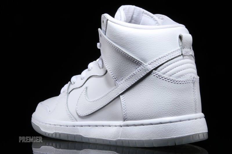 The Nike Dunk has had a brief history of releasing colorways that somewhat resemble classic Jordan retros. There was 2011’s ‘Space Jam’ Dunk Low and last May’s “J-Pack” that took aim at Royal and Bred 1s. It’s easy to forget but the shoe was originally intended for basketball purposes back in the day before Nike transformed the shoe’s connotation to be synonymous with skating. All this all-white Nike SB Dunk High needs to be considered a nod at the Air Jordan 11 “Legend Blue” is a little bit more blue on the icy outsole. With all white sneaker season upon us, what do you think about the Dunk High joining the action? Catch more photos below and grab your size today from retailers like Premier.