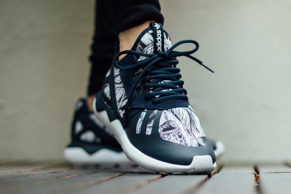 The adidas Tubular hasn’t strayed too far from the monochromatic path since releasing. The rare graphic prints have been well received (think the red seaweed camouflage variety) so it makes sense that the three stripes would branch out with more crazy patterns to appease us this summer. The latest inspiration looks at the art of leg tattoos, as a stark black and white graphic falls throughout the upper. What do you think of the latest adidas Originals Tubular? Check out more after the break and be on the lookout for this pair to arrive later this summer.