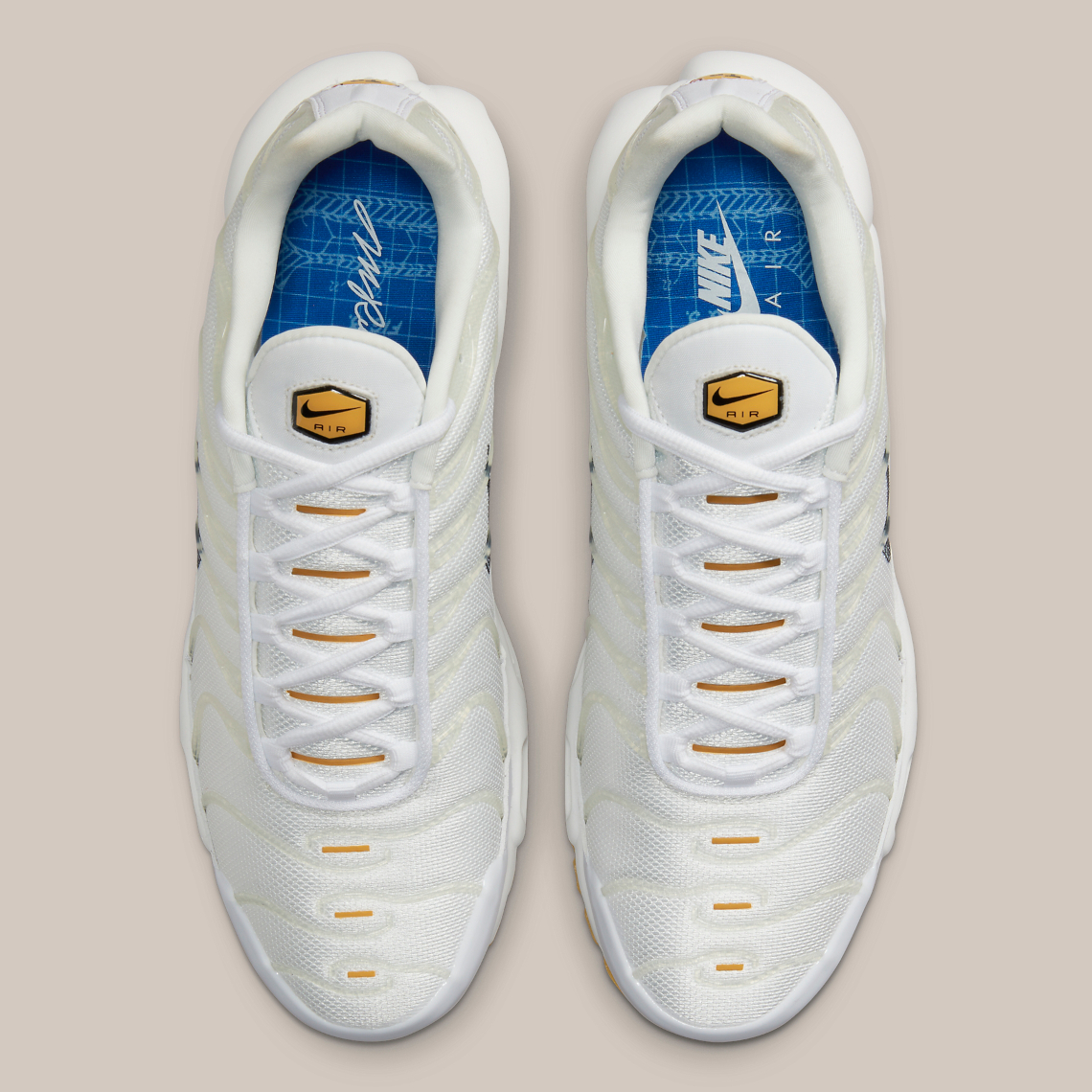 Ostensibly part of an expansive collection, the newly-surfaced pair indulges in a straightforward colorway akin to a recently-seen Air Max 90. White and off-white hues cover the entirety of the sneaker, with palm tree-inspired TPU overlays across the upper donning a semi-transparent finish. When paired with the blueprint-style sock-liners and “sketched” profile swooshes, the design choice nods to the model’s origins, with the origins of Air being the major theme. “Est. 1998” is stamped onto the lateral Tuned Air bubble underfoot, nodding to the debut of Sean McDowell’s performance-runner, while aglets presumably don “M. FRANK RUDY” text like the aforementioned Air Max 90.