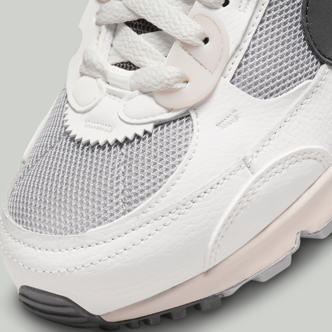 “Medium Ash” takes over the mesh base, which peeks out from underneath a series of non-standard, “Summit White”-colored tumbled leather panels. Semi-translucent TPU panels along the tongue follow suit, but the reshaped profile swooshes opt for a contrasting near-“Black” hue that also appears on the tongue, heel and Air Max unit underfoot. The remainder of the sole unit opts for an off-white hue that injects an “aged” aesthetic into Tinker Hatfield’s 32-year-old design.