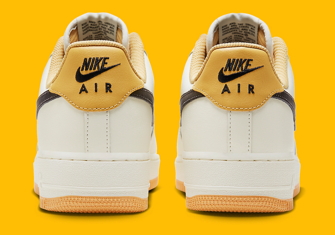 Recently, the Nike Sportswear staple emerged in a predominantly sail and black colorway, but faded gold hues enter the mix via laces, inner-lining, heel panels and traction underfoot. Lace dubraes forgo their traditional silver finish in favor of a honey-like hue that compliments the aforementioned faint yellow tones. Lastly, midsoles opt for an off-white look that allow for the bolder tones to revel in the spotlight.
