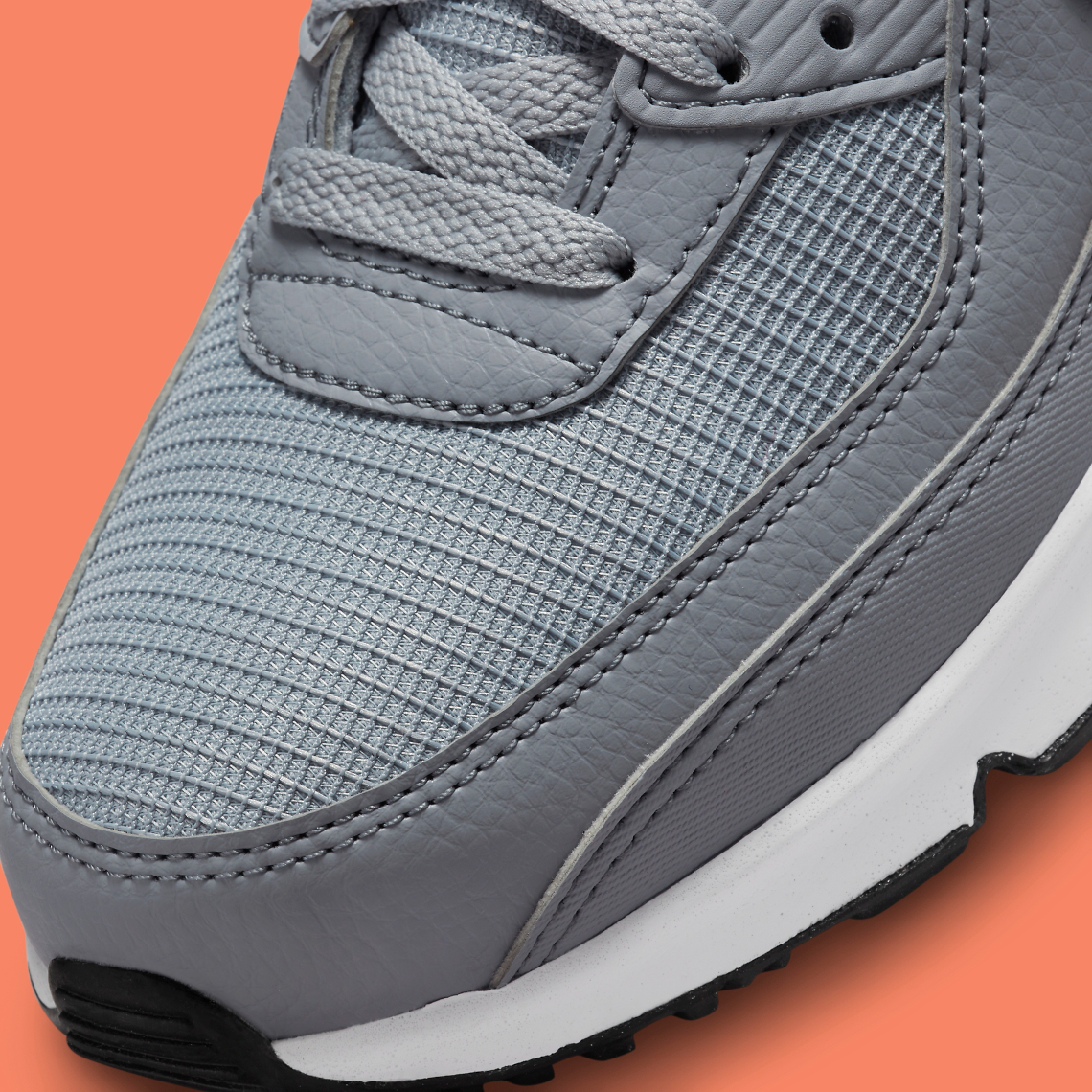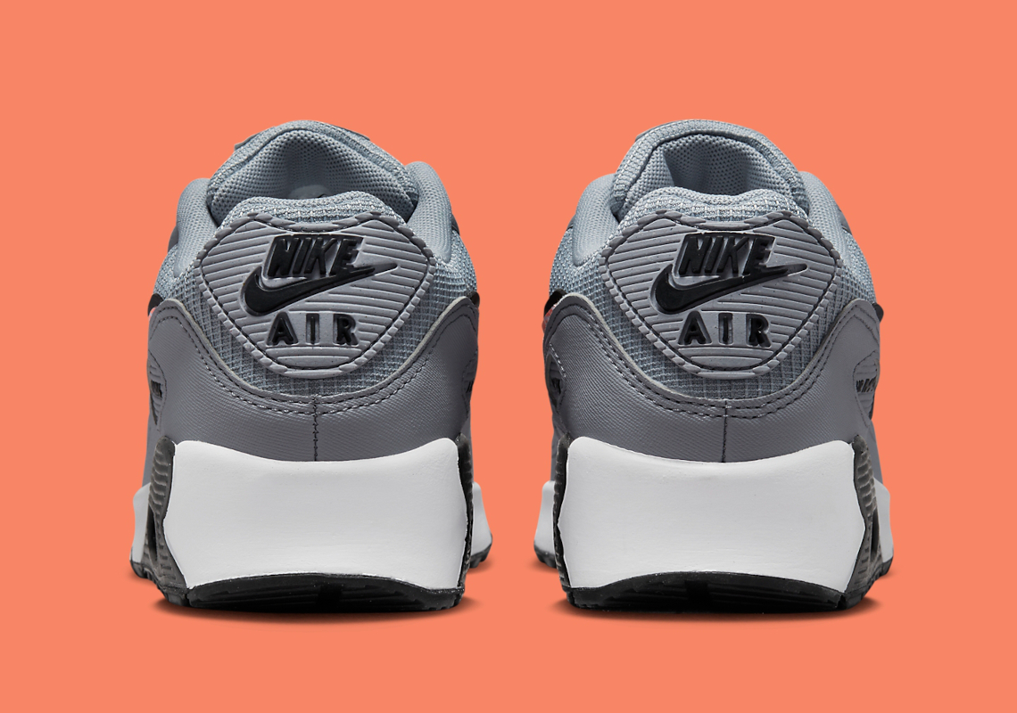 Recently, Tinker Hatfield’s design from 1990 emerged in a mix of straightforward grey, white and black tones across its standard build. Profile swooshes, however, deviate from their traditional solid color finish in favor of an all-over “NIKE” print makeover that may speak to a larger collection. Air Max units underfoot forgo any vibrant flair, favoring a pitch-dark look that allows for the aforementioned branding choice to revel in the spotlight.