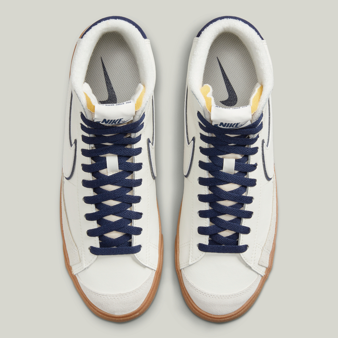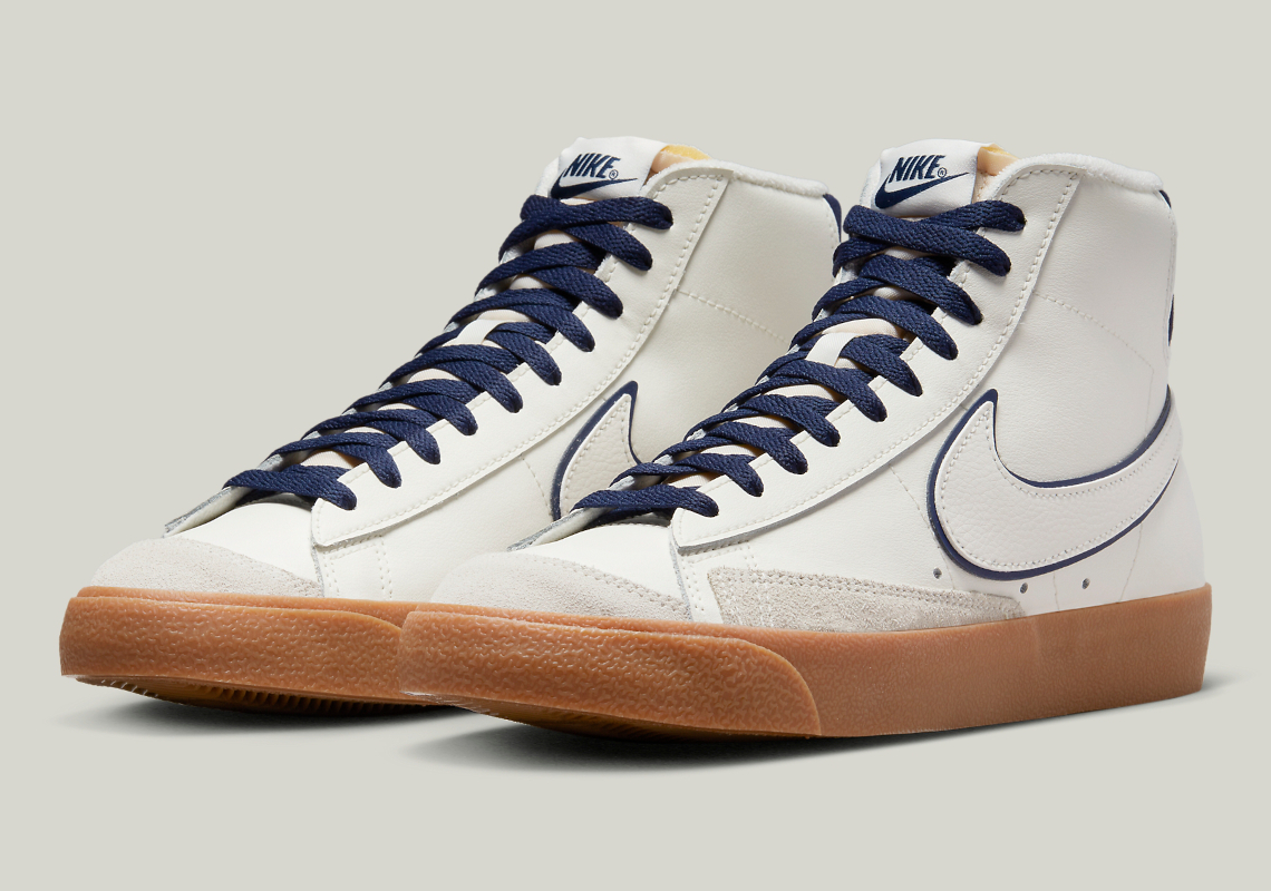 For its latest ensemble, the first Nike Basketball design has indulged in a clean off-white arrangement that’s complimented by dark navy details and a fan-favorite gum brown bottom. Laces, suede underlays at the upper spine and profile swoosh trims opt for a near-black look that pales in comparison to not only the bulk of the Nike Blazer, but also the herringbone-patterned sole unit underfoot.