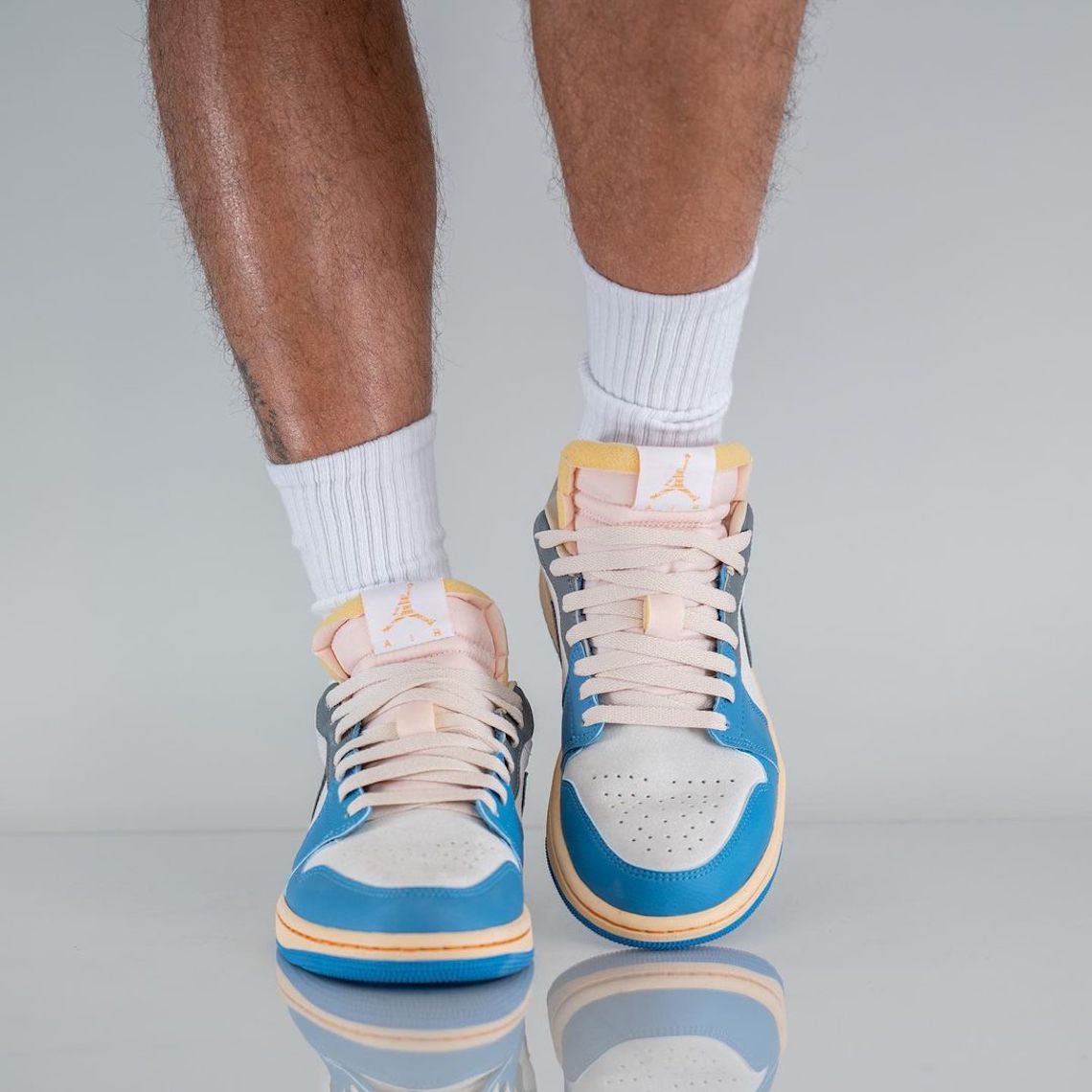 Colors inspired by the University of North Carolina Tar Heels, Michael Jordan’s once-home, aren’t new to Jumpman-related footwear, but the newly-surfaced pair remixes a heritage-inspired look. The sneaker’s forefoot area resembles traditional “University Blue”-clad retros, but the panels along the tongue and around the heel introduce a disparate grey into the mix. Exposed foam tongues work with “Wings” insignias at the spine and midsoles underfoot to deliver an aged look via their heavily-yellowed finishes. Lastly, oft-imitated outsoles don one last hit of vibrant college-friendly blue, rounding out the “UNC Grey” ensemble.