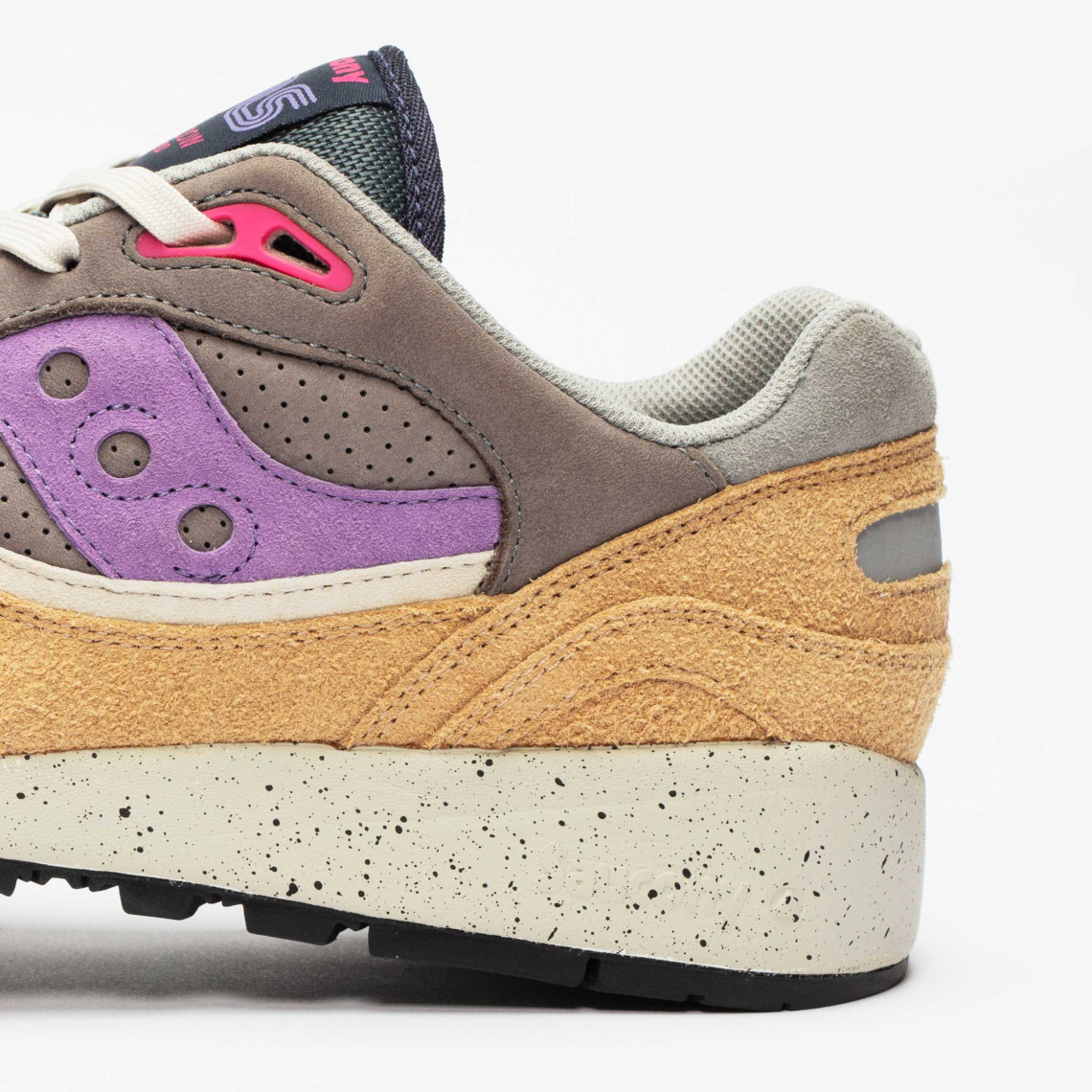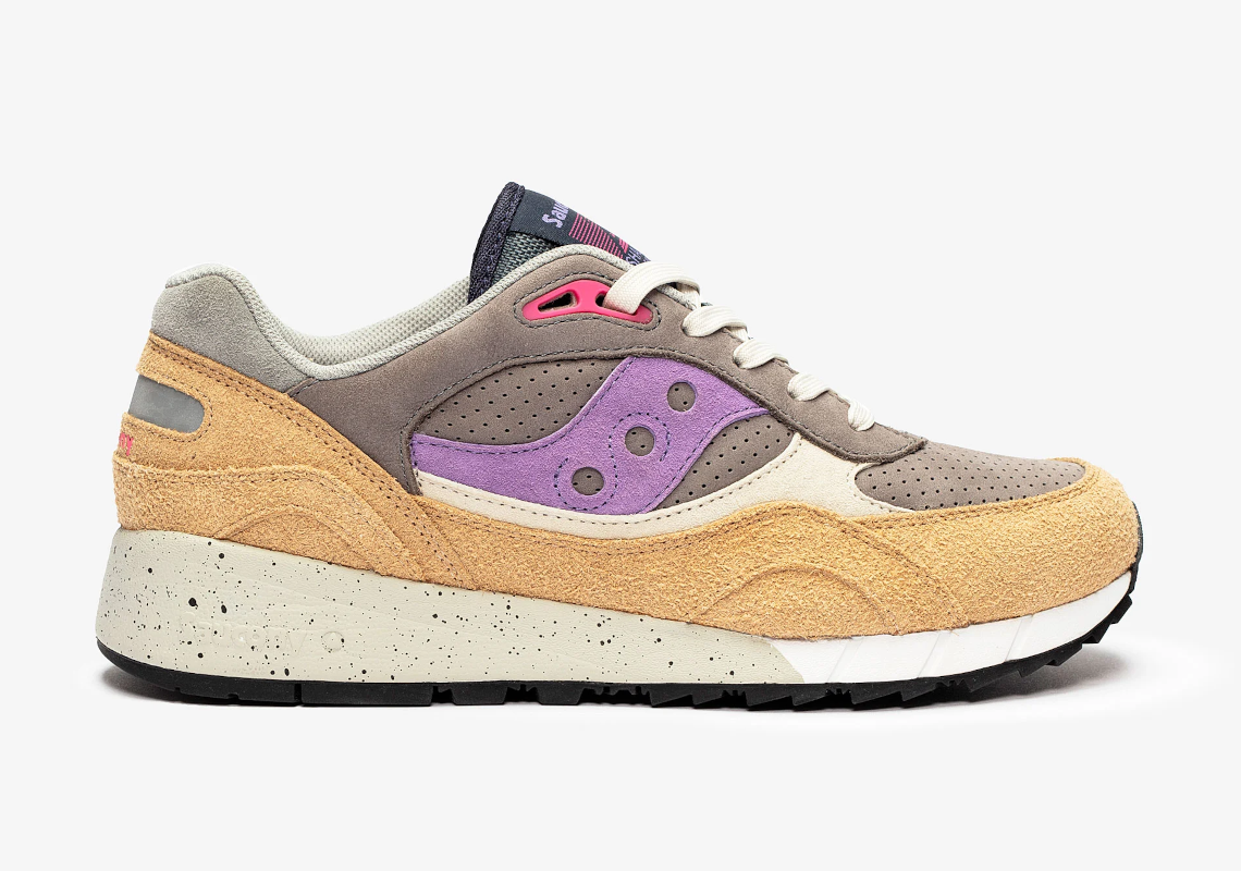 Inspired by the sneaker’s original color palette, as well as old catalogs from the brand’s outdoor segment, SNS’ next collaboration delivers a premium updated rooted in heritage. A two-tone hairy suede and perforated nubuck brings eye-catching tan with muted grey for a “nature versus city” arrangement that breathes new life into the 31-year-old model. A velvet-like material arrives via the profile “S” logo while the tongue takes on a nylon finish, material choices that further elevate the latest collaboration between both institutions. Lastly, hits of purple and pink work in-tandem with the speckled midsole to add some more personality to the Shadow 6000.