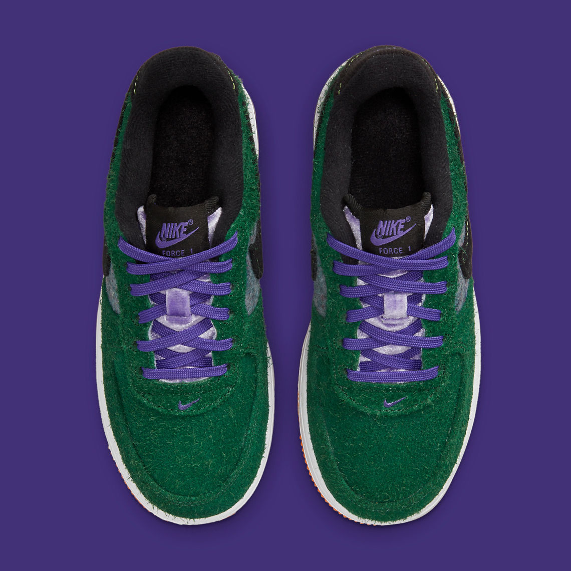 Set to release for kids, the newly-surfaced style of Kilgore’s creation from 1982 (technically the Low arrived in ’83) indulges in an autumn-appropriate mix of green, grey and purple, with the most former hue appearing via a rather shaggy suede. Mid-foot panels deliver a heather grey-reminiscent finish, likely recycled material from Nike’s manufacturing processes. Underfoot, the oft-imitated sole unit keeps things standard given their straightforward materials, color-blocking and materials.
