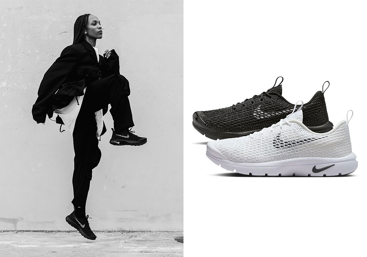 Updated September 16th, 2025: Revealed by Dover Street Market via the lookbook shots below, the Comme des Garçons (CDG) x Nike Air Rejuven8 releases in its black and white colorways on September 18th.