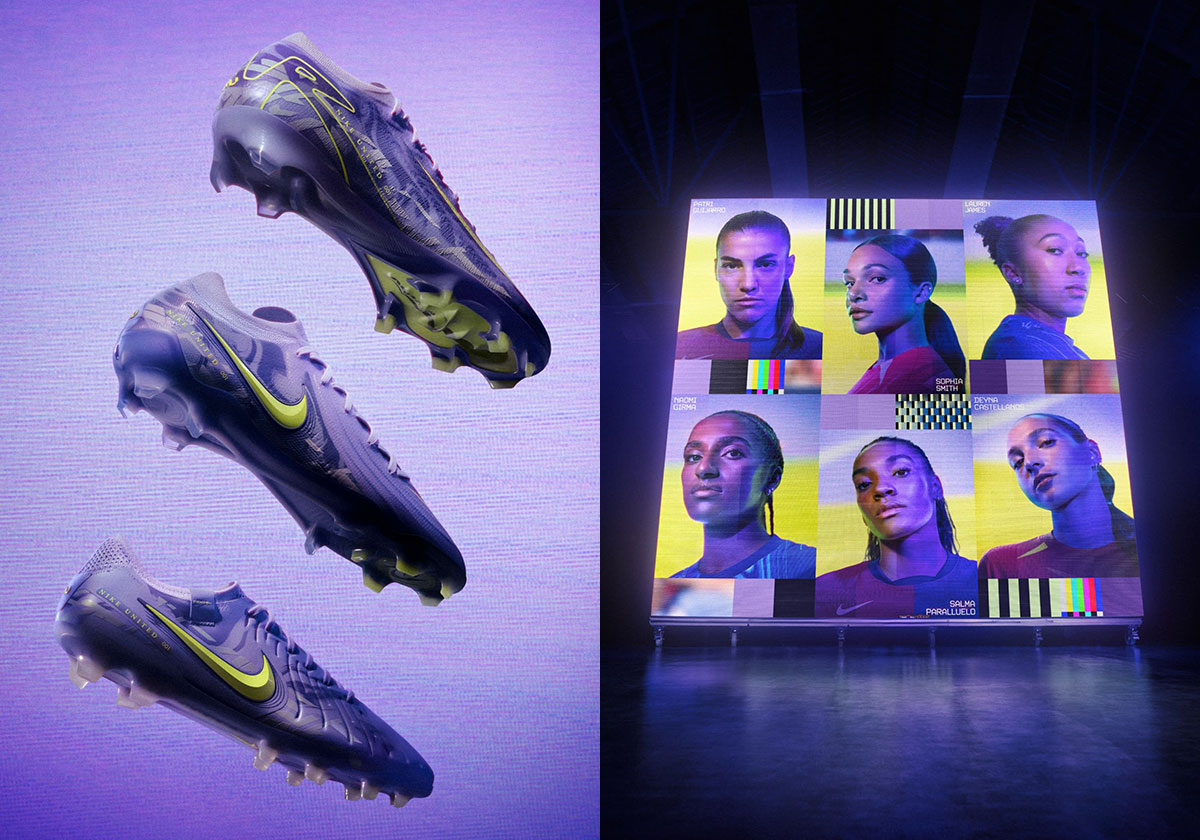 More granularly, Patricia Guijarro and Naomi Girma have their names (literally) planted on the Tiempo, while Lauren James and Salma Paralluelo hit the Mercurial and Sophia Wilson and Deyna Castellanos take up the Phantom. On top of the coloring, all three product lines sport uppers inspired by “shattered class,” harkening to a glass ceiling concept as each of these six women continue to propel the game forward.