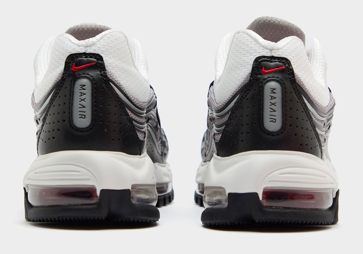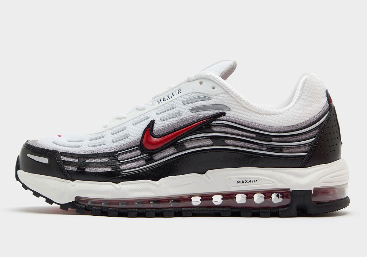 Revealed here for the first time, the Air Max TL 2.5 “Varsity Red” bears a classic colorway of white and black, dotted by the bold red hue on the Swoosh and just the slightest accents on the heel. In keeping with that OG aesthetic, Nike sticks with a white midsole and black outsole, while Varsity Red acts as the chief signal for the full-length Max Air cushioning that separates these from the pack.