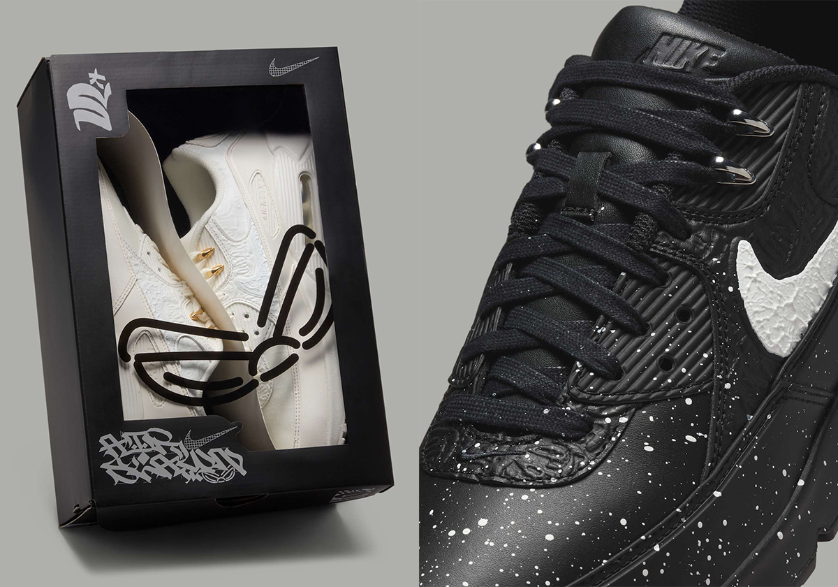 The Slawn x Nike Air Max 90 capsule is currently listed at retailers for a March 1st release, either colorway retailing at $160.