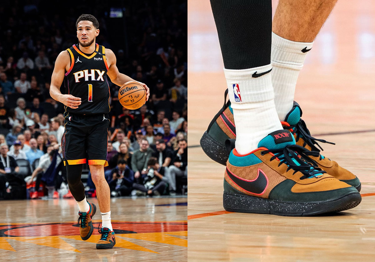 Devin Booker has sported yet another Nike Book 1 PE inspired by another original colorway of the running/hiking hybrid shoe. This Black/Brown/Teal colorway was one of six original styles offered by Nike in 1991; it last released to the public in late 2019 as part of the Nike x Nordstrom collection by Olivia Kim. This PE is not expected to release to the public.