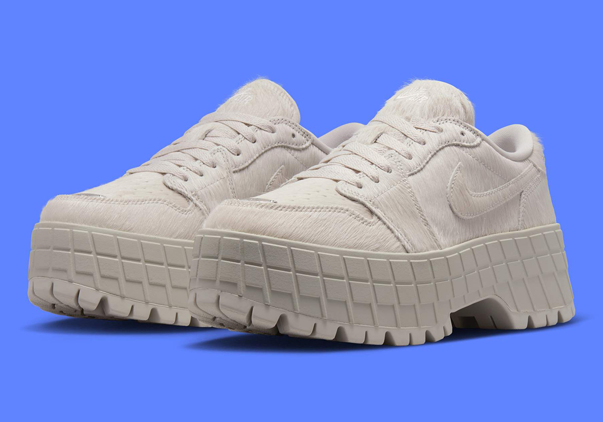 The blurring lines between sneakers and fashion typically conjure up silhouettes like the New Balance 1906L, but quietly, Nike’s tendency to platform or otherwise boot-ify their models can be classed under the same concept. Since the introduction of the low-cut of the Air Jordan 1 Brooklyn, the silhouette has bounced between different material make-ups including leather and snakeskin. However, with the Air Jordan 1 Low Brooklyn now surfacing in “Light Bone” and “Metallic Silver,” it appears the shoe may have found a home in pony hair.