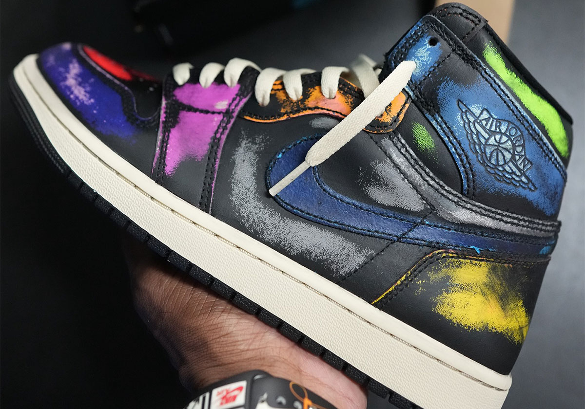 Updated June 30th, 2025: Additional images of the Air Jordan 1 High “Self Expression” have been uploaded courtesy of @jaythesneakerguy. The sneaker features three layers of paint, including a dark exterior, multi-color middle layer, and then crisp white base underneath it all. Look for these to hit SNKRS in adult and grade school sizing on July 31st, 2025.