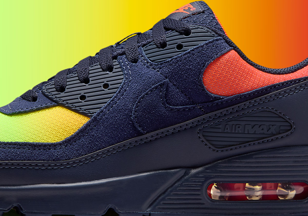 Nike’s latest Air Max 90 isn’t for the fashionably reserved. Joining a “Racing” pack among standout general releases, this upcoming colorway signals summer with a refershing, attention-grabbing gradient.